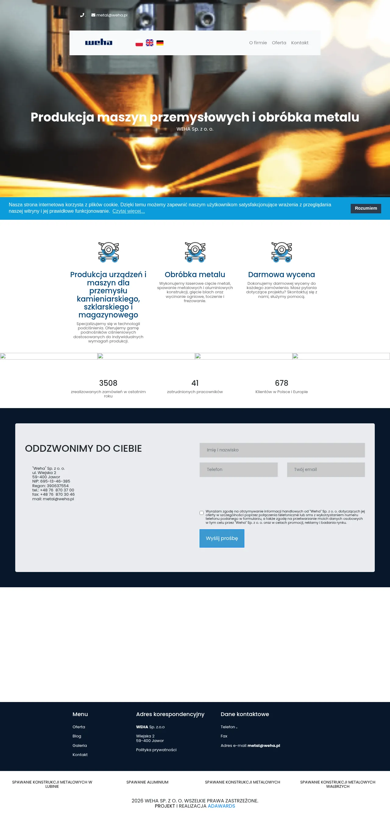 WEHA Sp. z o.o., founded in 1998 as a subsidiary of the German firm WEHA Ludwig Werwein GmbH, is an industrial manufacturer specializing in metal processing and machine production. The company serves clients across Europe and the United States, offering expertise in laser cutting, welding, and structural fabrication. Their production facility is equipped to handle complex projects ranging from small-scale details to heavy components weighing several tons. By utilizing 3D design software and advanced CNC machinery, the company ensures high precision in all manufacturing outputs. The business is committed to ongoing technological investment to improve quality and reduce costs for its international clientele.