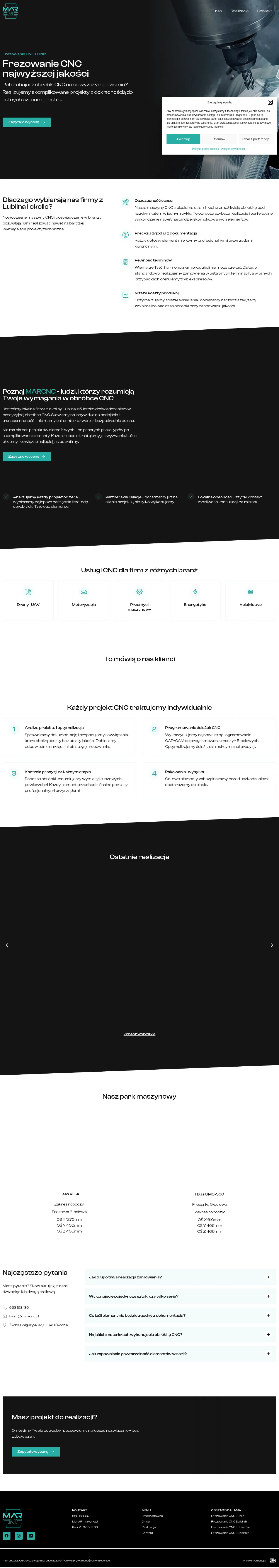 MARCNC Marcin Borówka is a Świdnik-based workshop specializing in CNC machining of metals and plastics. The company operates a modern machine park and delivers parts from single prototypes to small production runs. Services include programing on 3- and 5-axis machines, project analysis and process optimization, and end-to-end production including inspection and shipping. The team emphasizes direct customer contact and transparent deadlines and pricing.