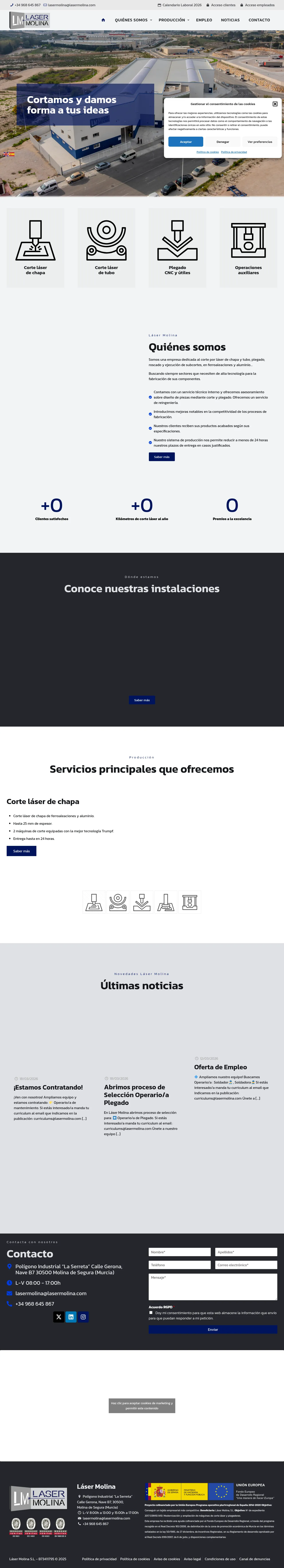 Láser Molina is a specialized metal processing company focused on high-precision laser cutting, bending, and secondary fabrication services. They provide comprehensive manufacturing solutions for sheet metal and tube components, utilizing advanced CNC technology for both prototyping and serial production. The company serves various industrial sectors by offering internal technical consulting, reengineering, and static and dynamic simulation services. Dedicated to quality and efficiency, they maintain strict production controls to ensure components meet rigorous project specifications. Their operational capabilities are further supported by a commitment to sustainable practices and continuous improvement in all manufacturing processes.