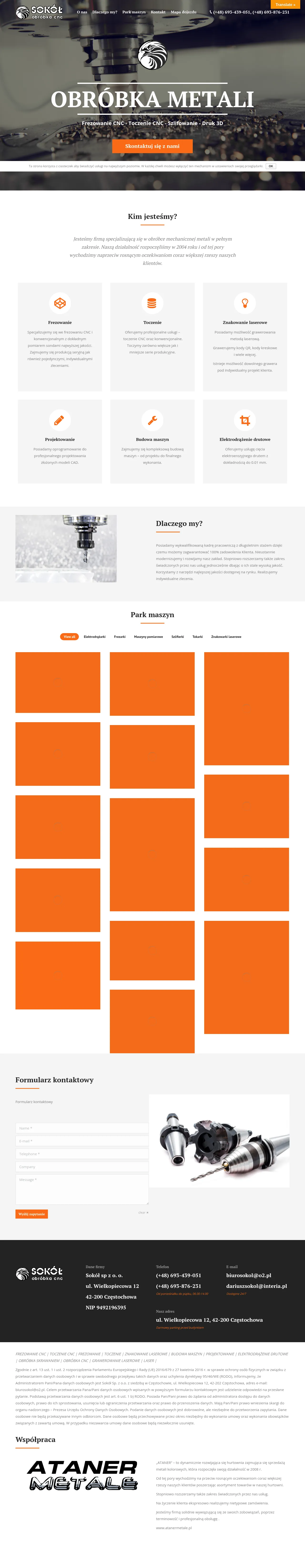 SOKÓŁ is a metalworking company based in Częstochowa specializing in comprehensive CNC machining services. The company provides precision milling, turning, and grinding for a variety of industrial applications. In addition to traditional machining, the firm utilizes laser technology for cutting and engraving tasks. The facility also incorporates additive manufacturing capabilities to offer 3D printing solutions. The business focuses on delivering technical manufacturing support to meet diverse client requirements.