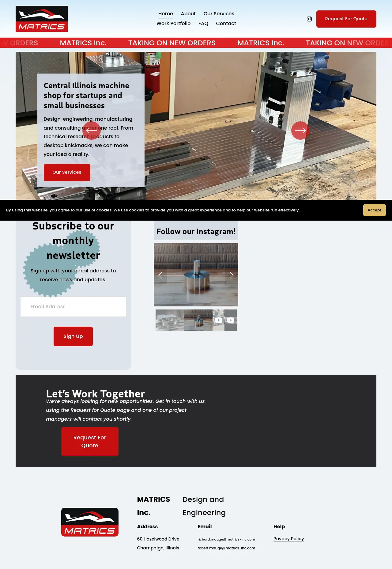 MATRICS Inc. is a Central Illinois-based machine shop providing comprehensive design, engineering, and manufacturing services. The company specializes in assisting startups and small businesses with prototype development, low-volume production, and reverse engineering of discontinued parts. Their technical capabilities include multi-axis CNC milling, lathe turning, and custom mold fabrication. By offering integrated consulting alongside physical production, the firm supports clients through every stage of the product development lifecycle.