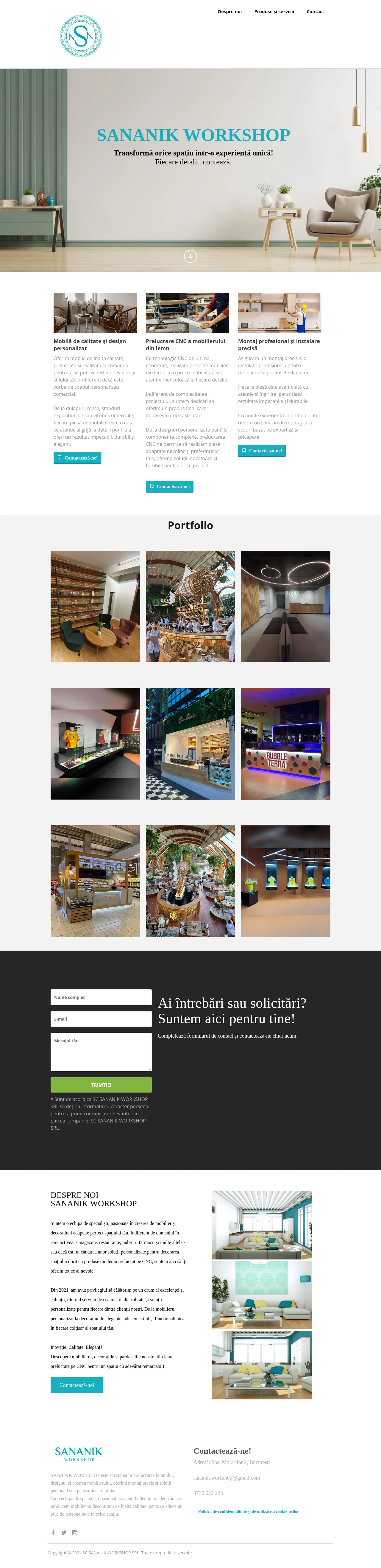 SANANIK WORKSHOP is a Bucharest-based woodworking workshop specializing in CNC-processed wooden furniture, decorative elements and flooring for commercial and residential spaces. The company provides custom design, precise manufacturing and on-site installation for clients including shops, restaurants, pubs and pharmacies. Established in 2021, the team focuses on tailored solutions and attention to detail for each project.