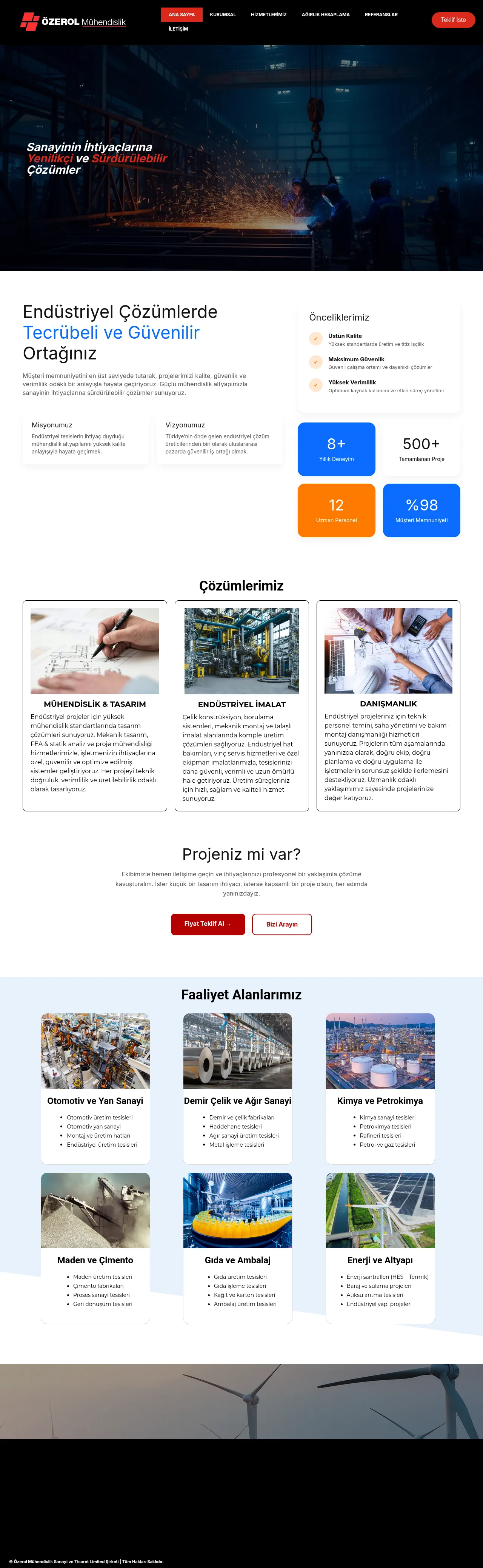Ozerol is an industrial solutions provider specializing in comprehensive engineering, manufacturing, and maintenance services. The company delivers end-to-end support for sectors including automotive, metallurgy, chemical, energy, and mining. Key capabilities range from mechanical and industrial design, including CFD and static analysis, to steel construction and precision machining. Additionally, Ozerol provides specialized technical staffing, facility maintenance, and industrial equipment servicing to improve operational efficiency and safety. Their approach integrates robust engineering with professional project management to ensure high-quality, sustainable solutions for complex industrial infrastructure.