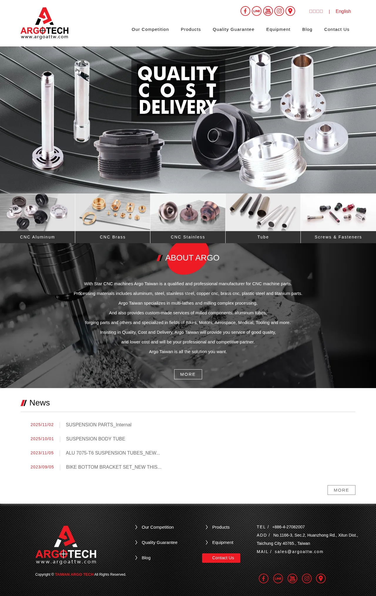 Taiwan Argo Tech is a professional manufacturing company specializing in precision CNC machining for diverse industrial applications. They offer comprehensive metal and plastic component production, with a particular focus on high-performance suspension and bicycle parts. Their services encompass advanced CNC turning and milling processes, utilizing a wide range of engineering materials. Dedicated to strict quality control standards, the company serves international markets with a commitment to rapid response and manufacturing excellence. They leverage expertise in precision engineering to support complex component requirements for the automotive and cycling sectors.
