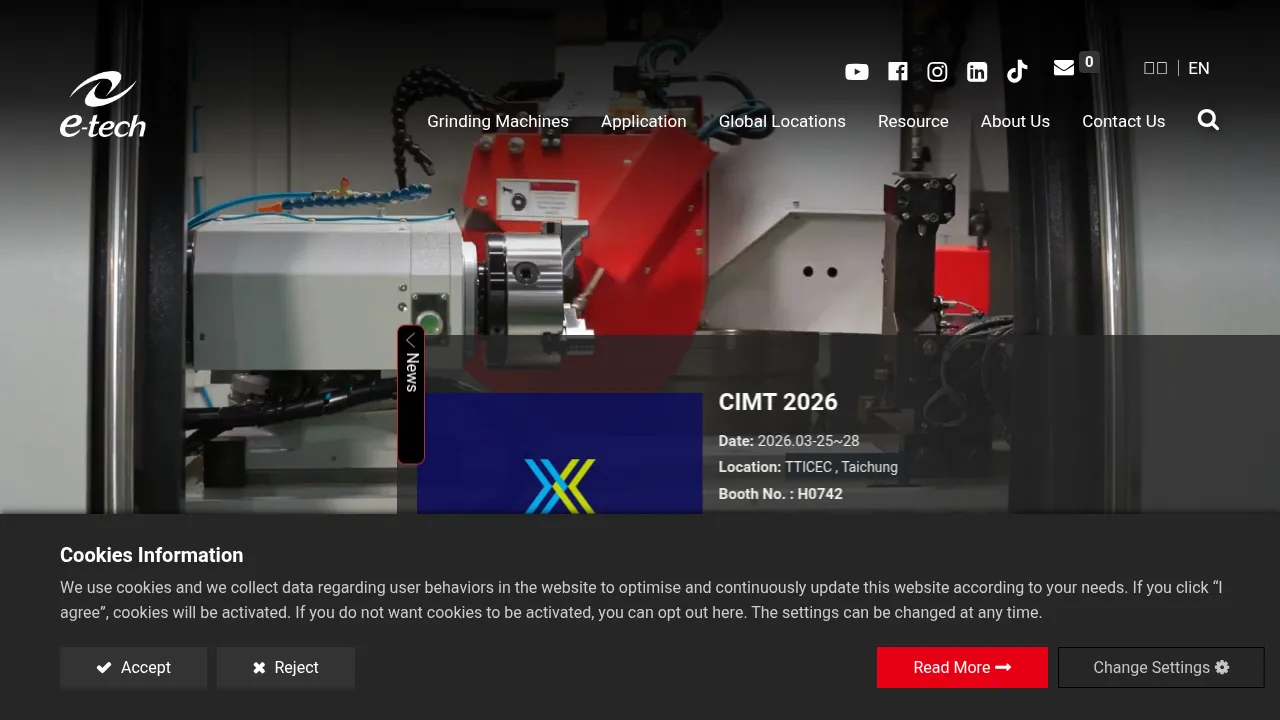 E-tech Machinery specializes in the design and manufacturing of advanced CNC grinding solutions, including cylindrical, surface, centerless, and vertical grinding systems. Serving a diverse range of sectors, the company provides high-precision machinery to the automotive, electrical, motor, gear, machine tool, and hand tool industries. Their systems are engineered to improve production efficiency and part quality while reducing operational costs through optimized processing and stability. With a global presence spanning operations in Taiwan, China, and the United States, E-tech delivers robust machining solutions tailored to complex industrial requirements.