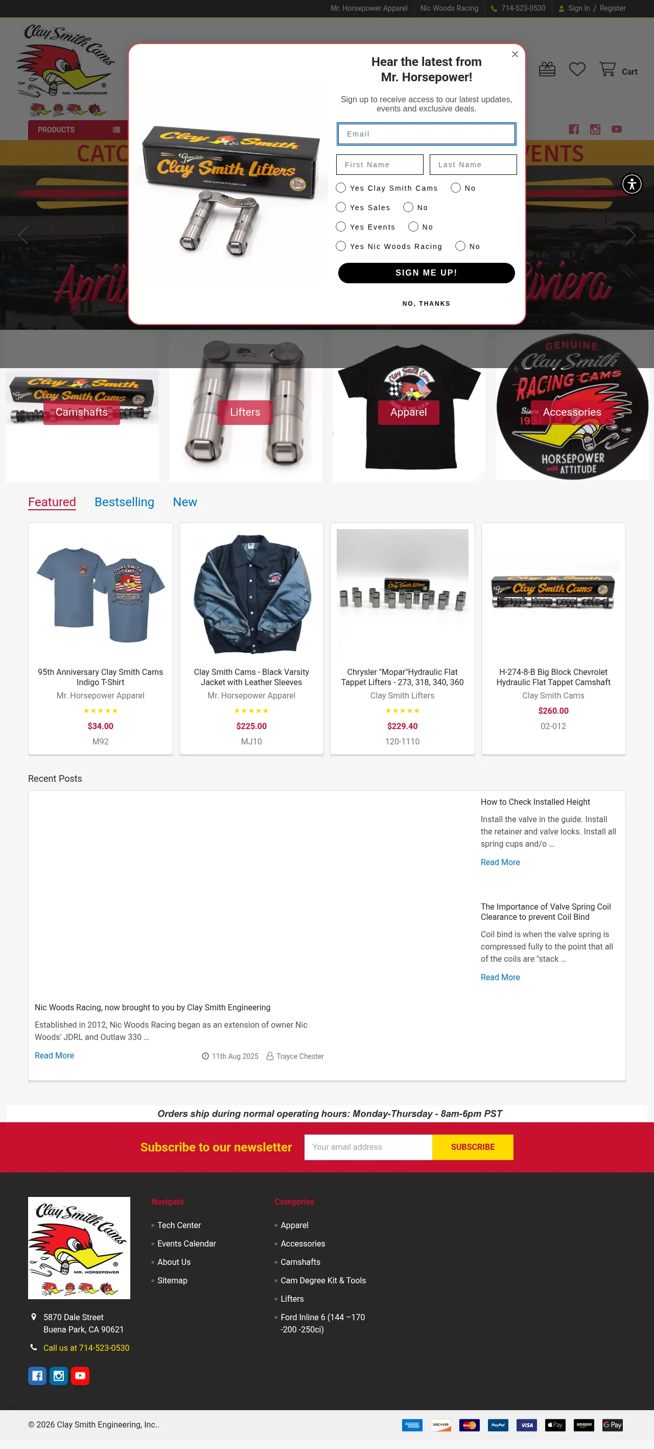 Clay Smith Engineering, Inc. is a long-standing manufacturer specializing in high-performance engine components and automotive racing parts. The company offers a comprehensive range of valvetrain solutions, including camshafts, lifters, valve springs, and timing sets designed for various domestic engine platforms. In addition to internal engine components, the business supplies fuel system accessories, gaskets, and oiling system hardware for motorsports applications. Serving the racing and performance automotive industry for over 90 years, the company also provides specialized engine kits for drag racing and classic vehicle restoration. All operations are supported by a commitment to precise engineering tolerances and performance-driven product design.