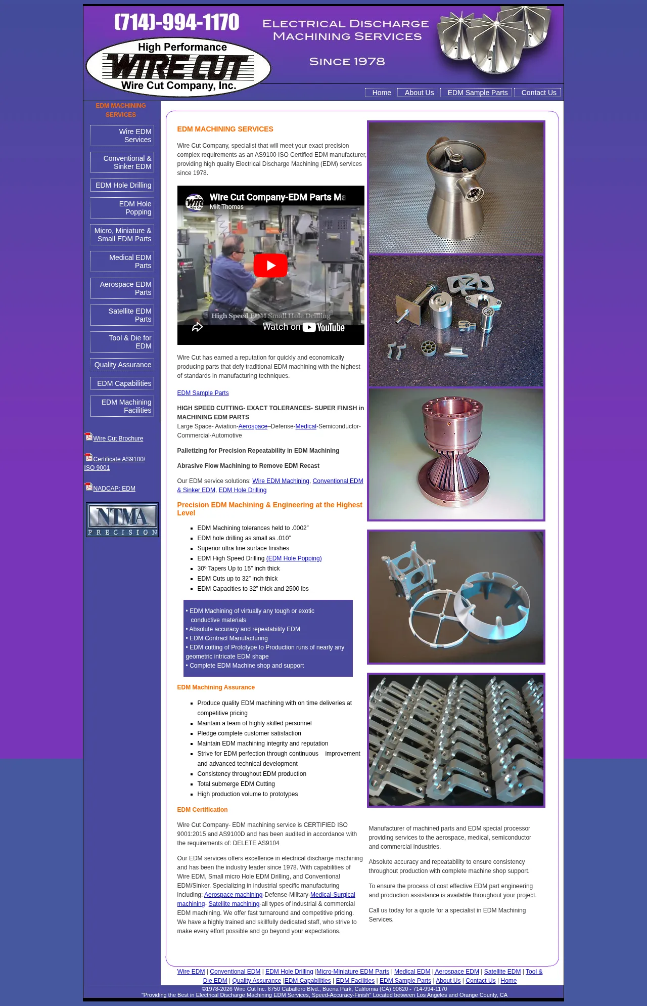 Established in 1978, Wire Cut Company provides specialized electrical discharge machining (EDM) services for high-precision components. The company serves the aerospace, medical, semiconductor, and commercial industries with advanced manufacturing capabilities including wire EDM, conventional EDM, and micro-hole drilling. They maintain strict quality standards, capable of achieving tight tolerances and ultra-fine surface finishes for complex projects. Their facility supports both prototype development and high-volume production runs. With a focus on engineering assistance, they offer consistent, reliable manufacturing solutions tailored to exact customer specifications.