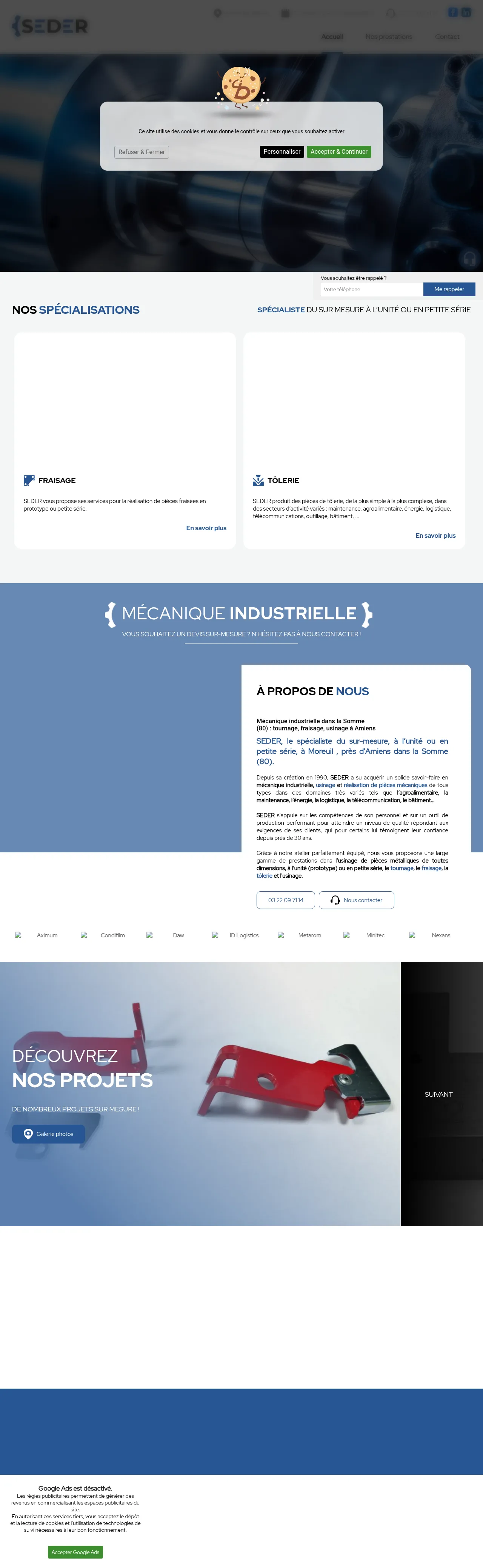 SEDER is a French industrial manufacturing company based in Moreuil, specializing in custom machining, sheet metal work, and boiler making since 1990. The company provides manufacturing services for prototypes and small production runs, catering to sectors including aerospace, energy, logistics, telecommunications, construction, and food processing. Their technical capabilities include precision machining, industrial sheet metal fabrication, and mechanical welding. Supported by a modern production facility, the company focuses on delivering high-quality, custom-engineered components based on client blueprints or models. SEDER emphasizes technical expertise, responsiveness, and versatility in handling complex projects across various metallic and synthetic materials.