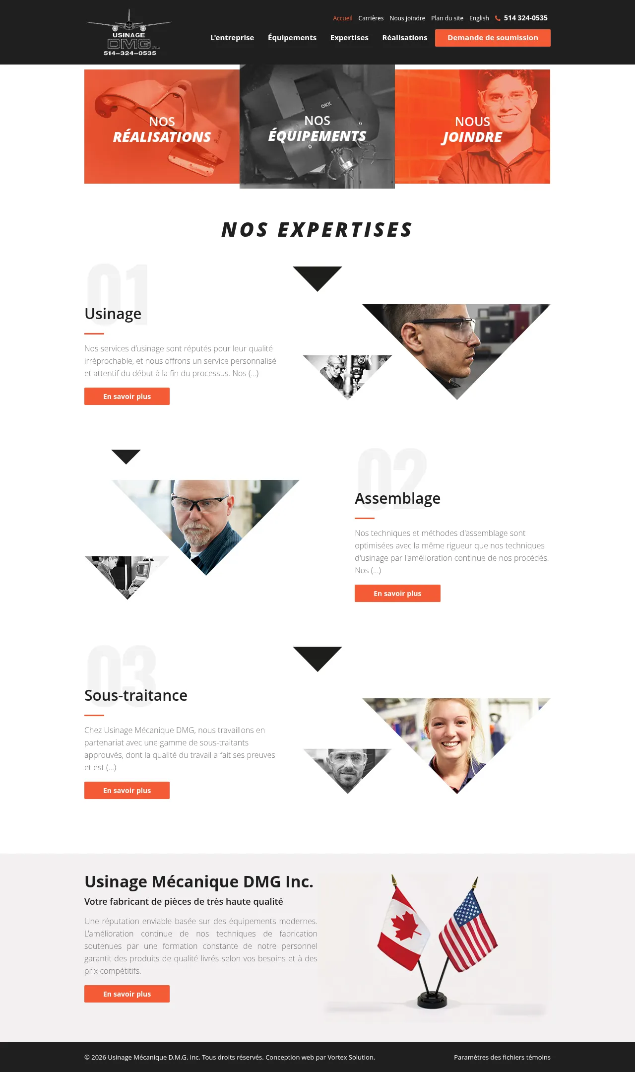 Usinage Mécanique DMG Inc. is a Canadian-based manufacturer specializing in high-precision mechanical machining services. The company provides comprehensive manufacturing solutions including custom machining, mechanical assembly, and contract manufacturing services. Their operations are supported by a commitment to continuous improvement in fabrication techniques and ongoing professional staff development. By leveraging modern production equipment, the facility ensures high-quality part production delivered at competitive prices. DMG Inc. serves a variety of industrial sectors requiring consistent and accurate mechanical components.