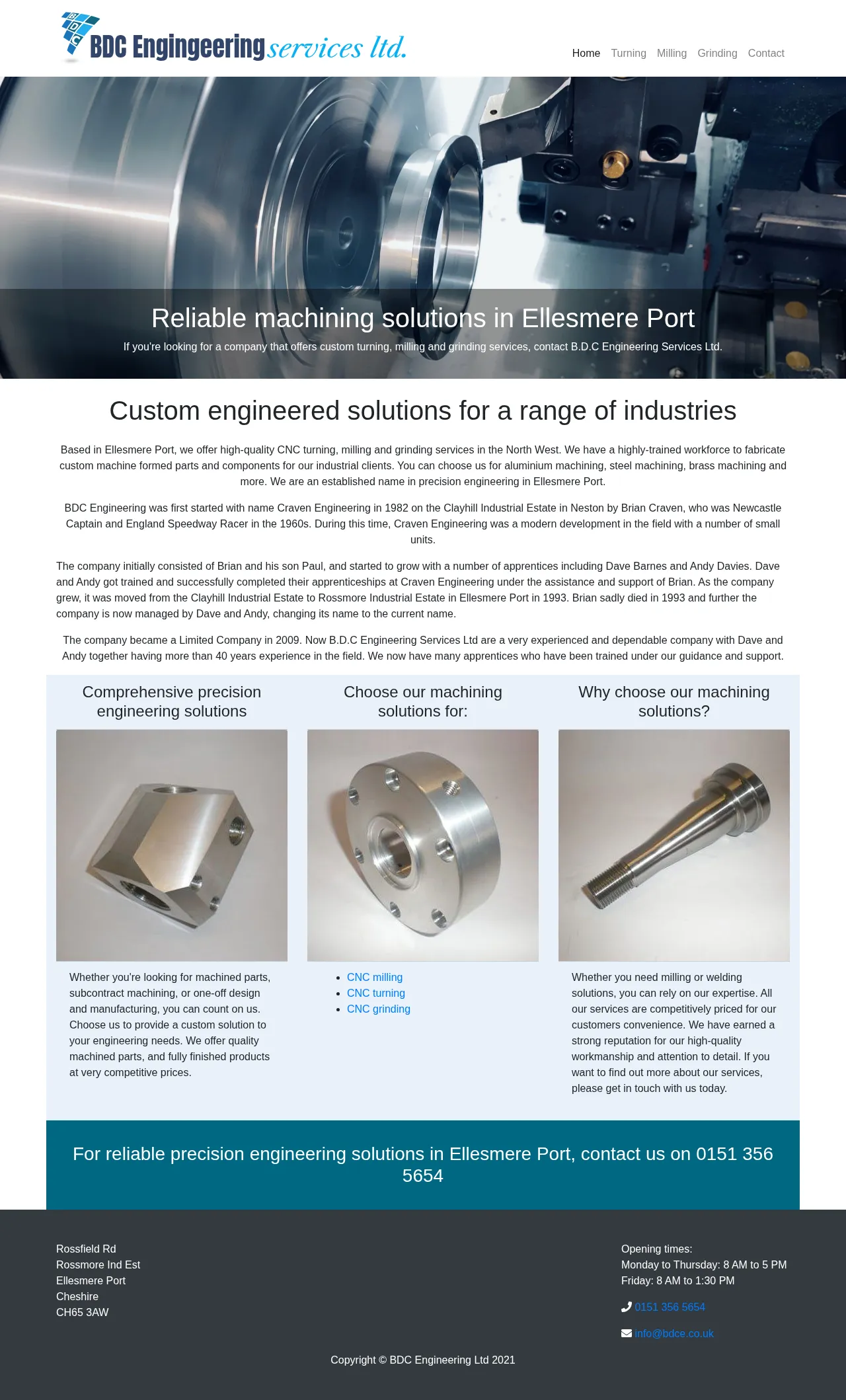 B.D.C Engineering Services Ltd is a precision engineering firm based in Ellesmere Port, offering custom machining solutions for a diverse range of industrial sectors. Established in 1982, the company specializes in CNC turning, milling, and grinding services for custom parts and components. They maintain a highly trained workforce dedicated to delivering high-quality fabrication and manufacturing. The company serves clients by providing both individual machined parts and fully finished engineering products. With decades of combined industry experience, the facility focuses on precision workmanship and detailed project execution.
