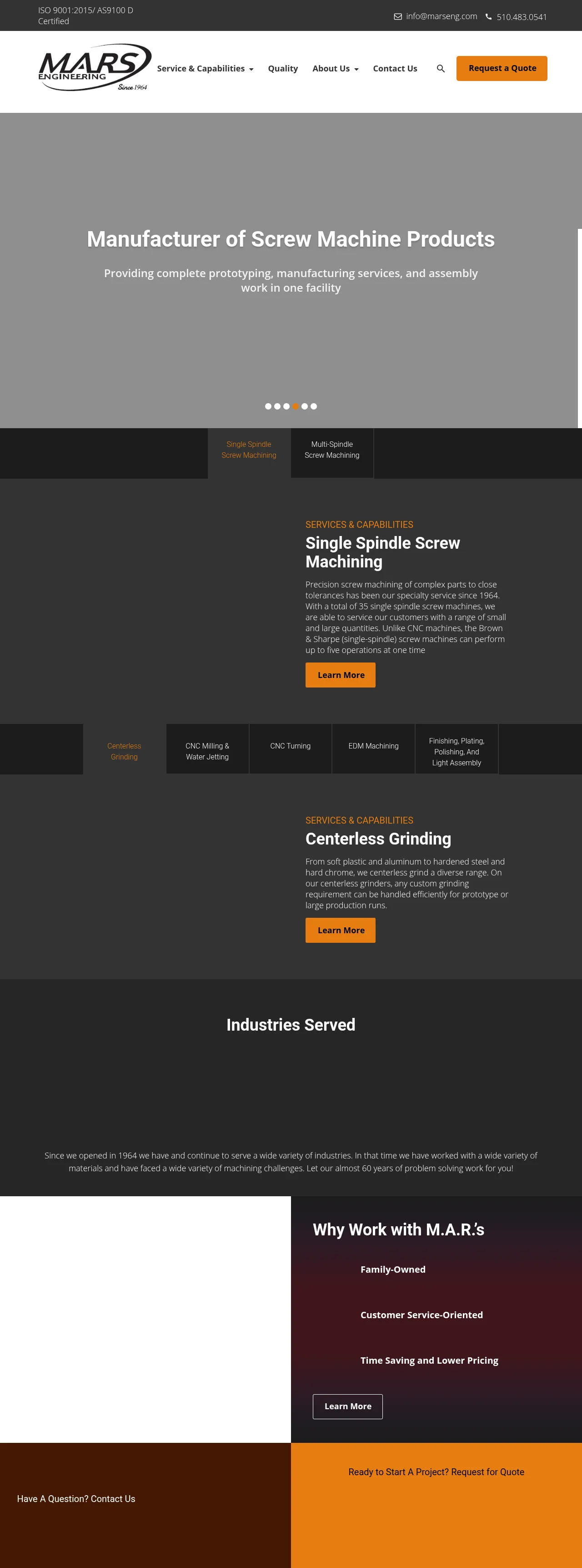 M.A.R.’s Engineering Company Inc. is a family-owned manufacturer specializing in high-volume screw machine products and precision CNC machining. Established in 1964, the company offers integrated prototyping, production, and assembly services from their San Leandro, California facility. Their technical capabilities include multi-spindle and single-spindle screw machining, wire EDM, CNC turning, milling, and centerless grinding. They serve diverse markets including the aerospace, automotive, medical, electronics, and food processing industries. The company distinguishes itself through a rigorous multi-stage quality control process and in-house tooling capabilities that support rapid project scaling and cost efficiency.