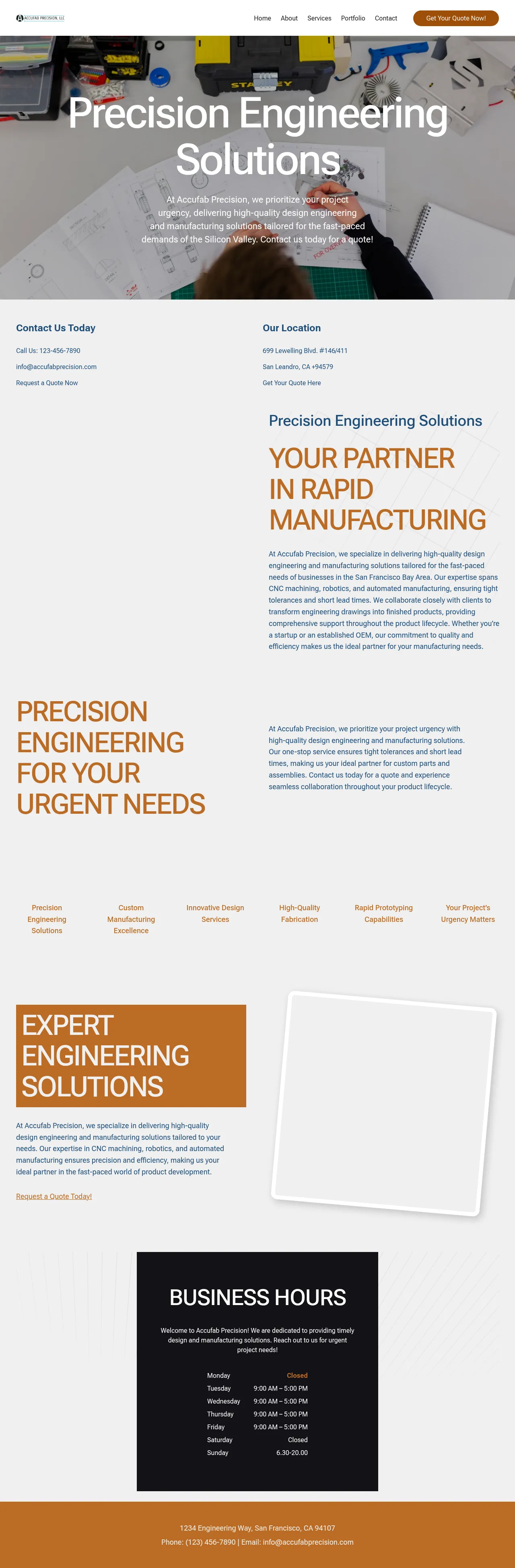 Accufab Precision provides comprehensive design engineering and manufacturing solutions tailored to the needs of the San Francisco Bay Area technology sector. The company specializes in high-precision CNC machining, robotic systems, and automated manufacturing processes. They offer end-to-end support for product development, assisting clients from initial design conceptualization through to final component production. The organization is recognized for its ability to handle urgent project timelines and maintain strict adherence to engineering tolerances. By fostering close collaboration with both startups and established OEMs, Accufab Precision serves as a strategic partner for complex custom assemblies and rapid prototyping.
