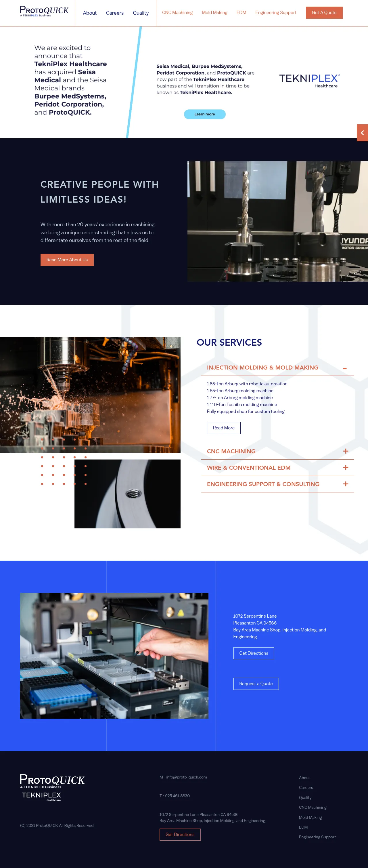 Proto-Quick is a professional manufacturing facility based in the San Francisco Bay Area specializing in CNC machining, precision injection molding, and engineering support. With over two decades of industry experience, the company provides comprehensive services ranging from prototype development to full-scale production. They serve a variety of sectors, including the medical device industry, by leveraging in-house CAD design and plastics flow simulation capabilities. The shop is equipped with advanced EDM and robotic molding technology to ensure high-precision output. Their dedicated engineering team offers design-for-manufacturability support and technical consultation to optimize part functionality and production efficiency.