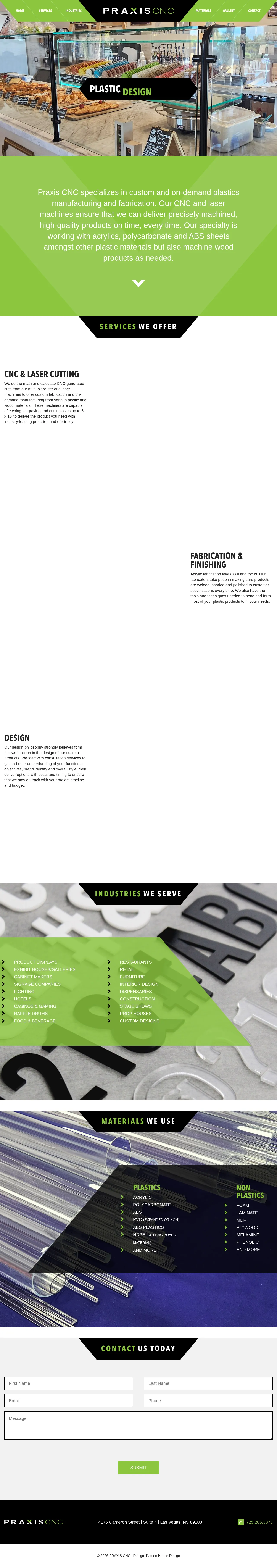 Praxis CNC provides custom and on-demand plastics manufacturing and fabrication using CNC and laser equipment. The company specializes in machining acrylic, polycarbonate, ABS and PVC sheet materials and can also machine wood products as needed. Praxis CNC offers design consultation and delivers precision-cut parts for prototyping and production runs.