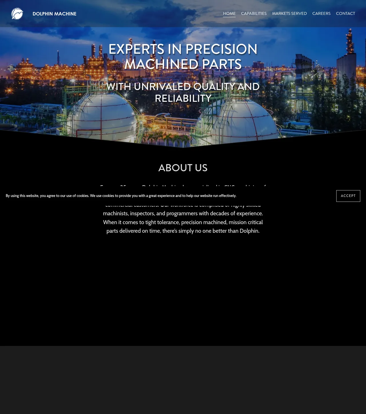 Dolphin produces precision machined components from two AS9100 Rev. D and ISO 9001:2015 certified facilities in North Las Vegas, Nevada. Services include CNC milling and turning, honing, product design using SolidWorks and CATIA, and comprehensive inspection and metrology. The company machines to tight tolerances (±0.0005 in) and supports commercial aerospace, military, energy and other industrial markets.