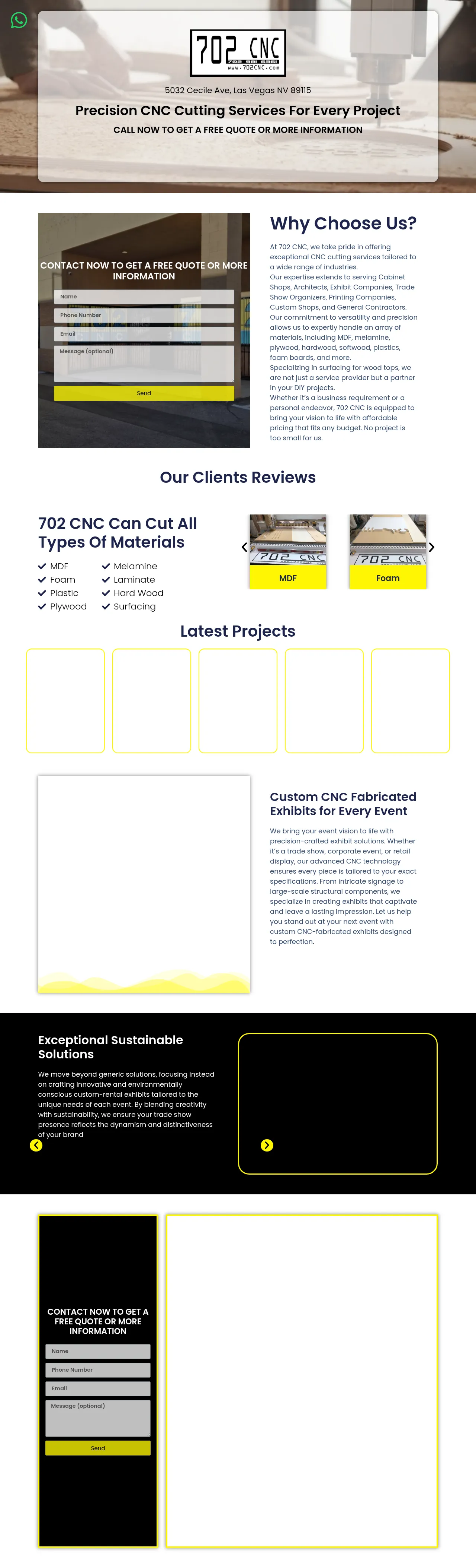 702 CNC provides precision CNC cutting and fabrication services for commercial and personal projects. The company serves cabinet shops, architects, exhibit companies, trade show organizers, printing companies, custom shops, and general contractors. It works with a wide range of materials and offers wood-top surfacing and custom exhibit components for events and displays.