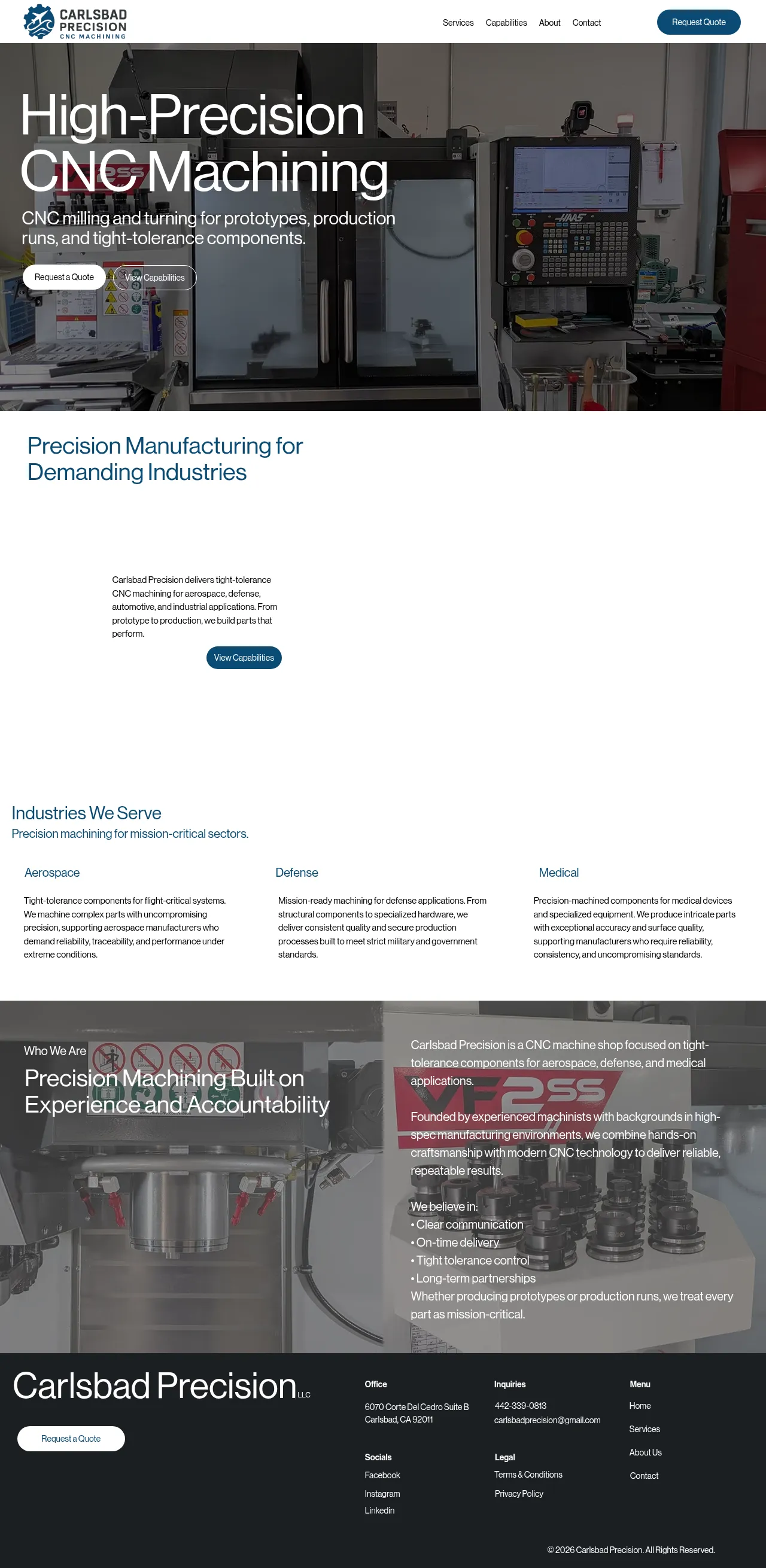 Carlsbad Precision is a manufacturing firm specializing in high-precision CNC milling and turning services for tight-tolerance components. The company serves mission-critical industries including aerospace, defense, and medical device manufacturing. Their capabilities range from the production of prototypes to high-volume manufacturing runs. The business emphasizes rigorous quality control, traceability, and adherence to strict military and industrial standards. Carlsbad Precision maintains a focus on reliable delivery schedules and the establishment of long-term collaborative partnerships.