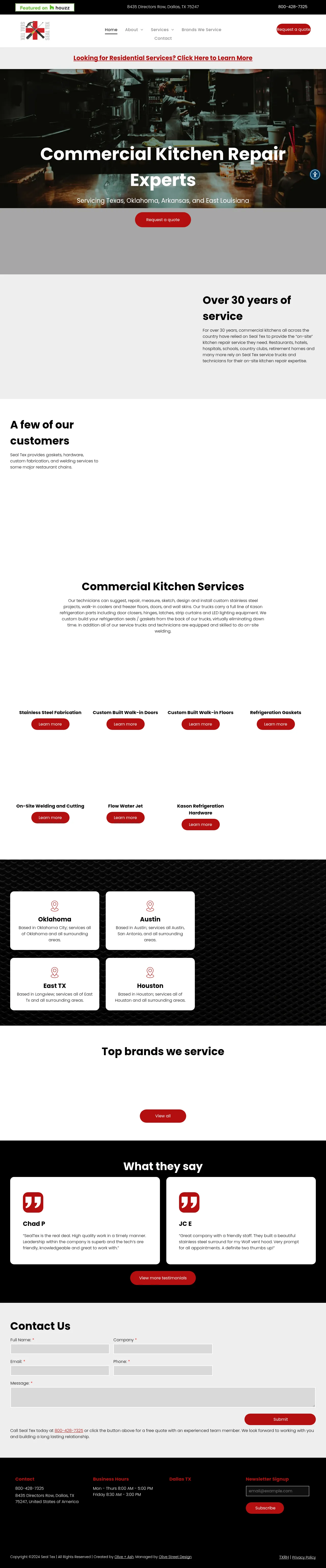 Seal Tex is a specialized manufacturer and service provider for the food service and residential sectors, offering custom sheet metal fabrication and on-site repair solutions. The company operates multiple branches across Texas, Oklahoma, Arkansas, and Louisiana, serving restaurants, hotels, schools, and high-end residential clients. Their core capabilities include the custom manufacturing of refrigeration gaskets, stainless steel vent hoods, fireplace surrounds, and outdoor kitchen components. Utilizing advanced waterjet and press brake technology, the firm delivers both bespoke decorative metalwork and essential commercial kitchen maintenance. Established in 1992, the family-owned enterprise emphasizes rapid on-site service to minimize downtime for professional kitchen operations.