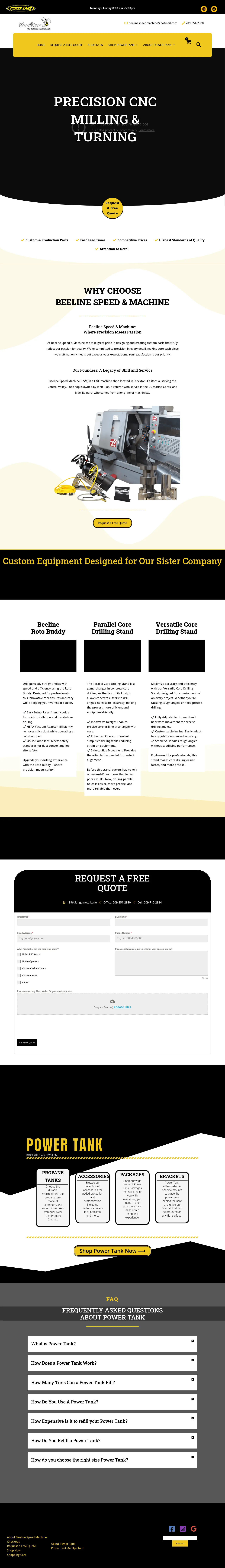 Beeline Speed Machine (BSM) is a CNC machine shop located in Stockton, California that serves customers across the Central Valley. The company provides CNC milling, CNC turning, and laser engraving, and it also designs and builds custom equipment for affiliated businesses. The shop is owned by John Rios, a U.S. Marine Corps veteran, and Matt Bainard, who comes from a family of machinists.