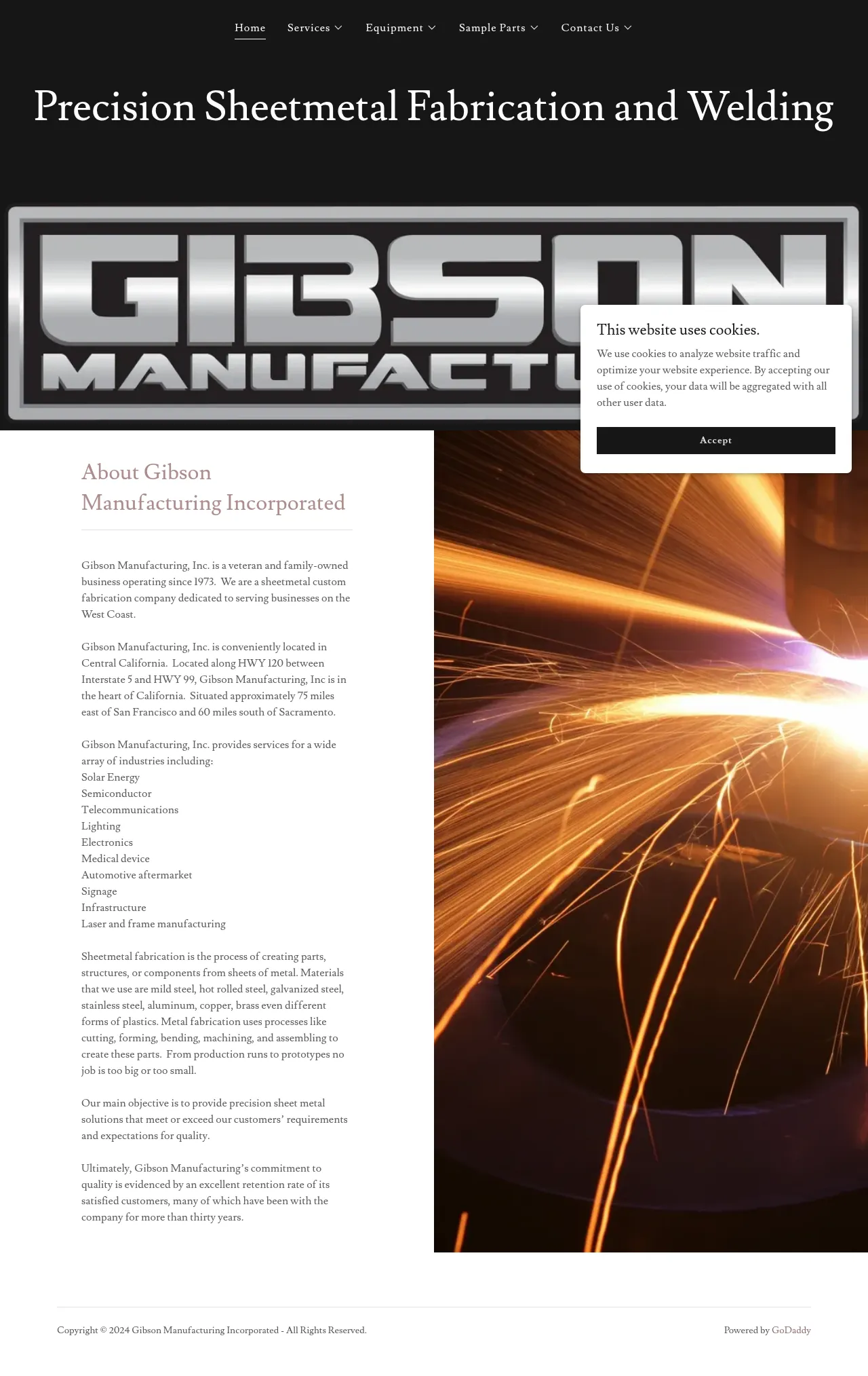 Gibson Manufacturing Incorporated is a sheet metal and frame fabrication shop based in Manteca, California. The company offers precision sheet metal fabrication, prototyping, welding, laser cutting, punching and forming services. It produces welded frames and fabricated components for industrial applications. Gibson works with stainless steel, mild steel and aluminum.