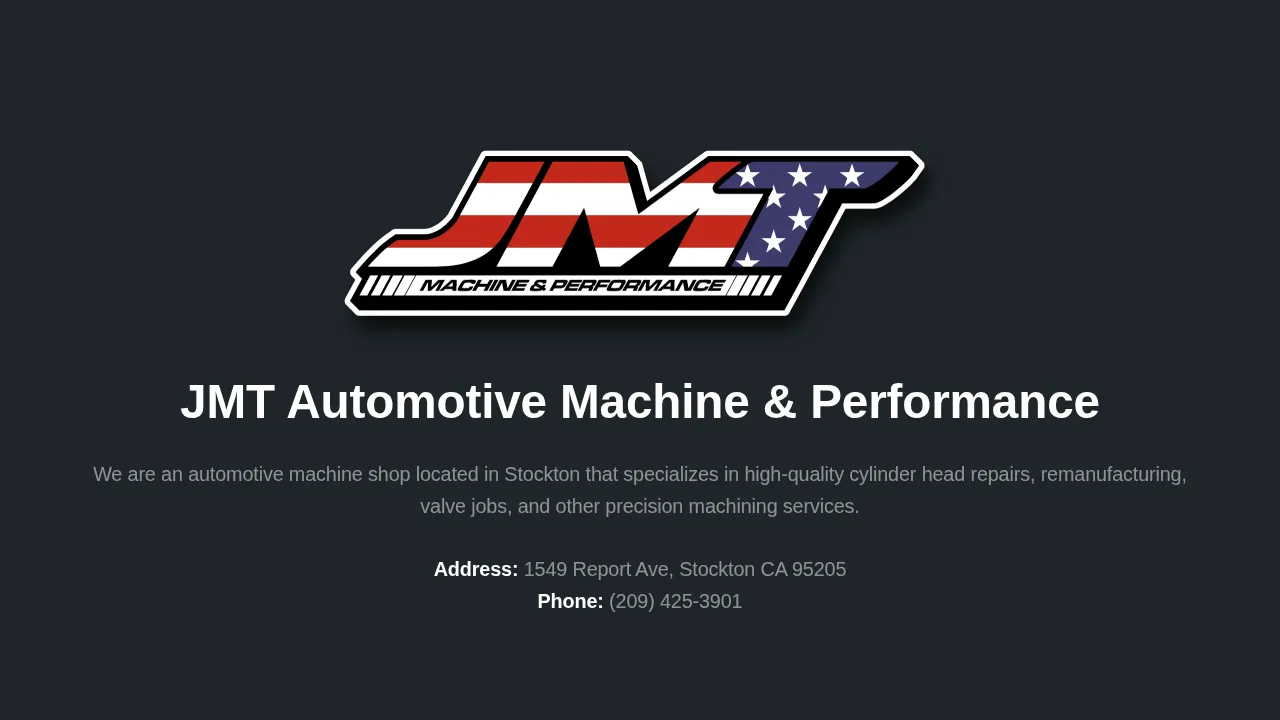 The company is an automotive machine shop located in Stockton, California, specializing in cylinder head repair and remanufacturing. It performs valve jobs and other precision machining services for engine components. Work focuses on repair and remanufacture of cylinder heads and related precision machining tasks.