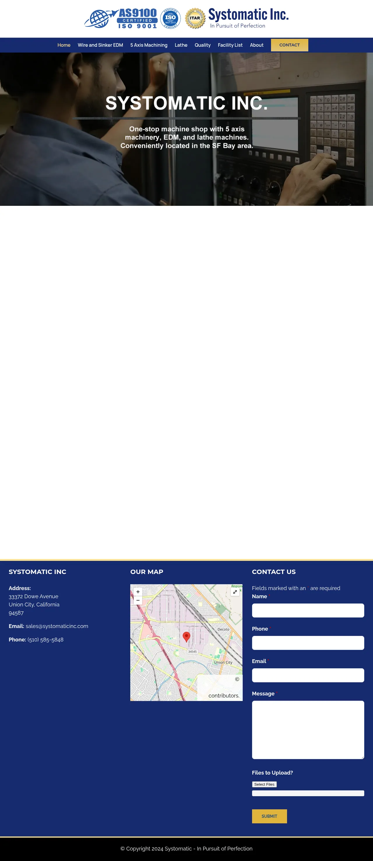 Systomatic Inc. is a precision machining provider specializing in 5-axis CNC machining, wire EDM, and sinker EDM services. Operating 24/7, the company delivers complex component manufacturing with advanced capabilities in angular tolerance and surface finishing. Their facility utilizes state-of-the-art equipment, including temperature-controlled inspection rooms and automated CMM technology to ensure quality standards. Serving various high-precision industries, the company maintains a dedicated staff focused on project delivery and continuous quality management. The organization is ITAR registered and maintains a rigorous quality assurance program for all manufactured parts.