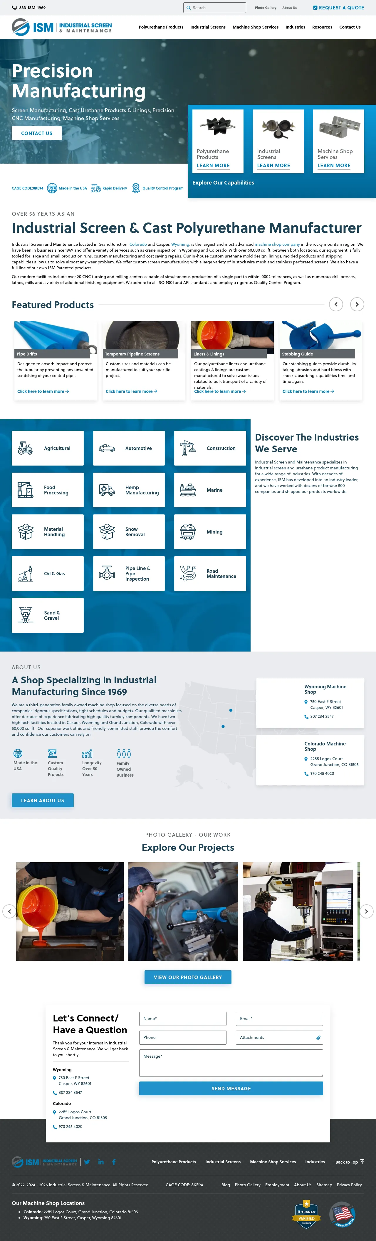 Industrial Screen and Maintenance is a long-standing manufacturing firm providing specialized industrial screening and custom polyurethane solutions. Operating since 1969 with facilities in Colorado and Wyoming, the company serves diverse sectors including agriculture, construction, mining, and oil and gas. Their capabilities include custom mold design, precision CNC machining, and the production of abrasion-resistant linings, stabbing guides, and various filtration products. With extensive experience in high-production and custom manufacturing, they utilize advanced turning and milling centers to meet rigorous industry standards. The company supports a global client base, offering engineering support and durable, high-performance industrial components.