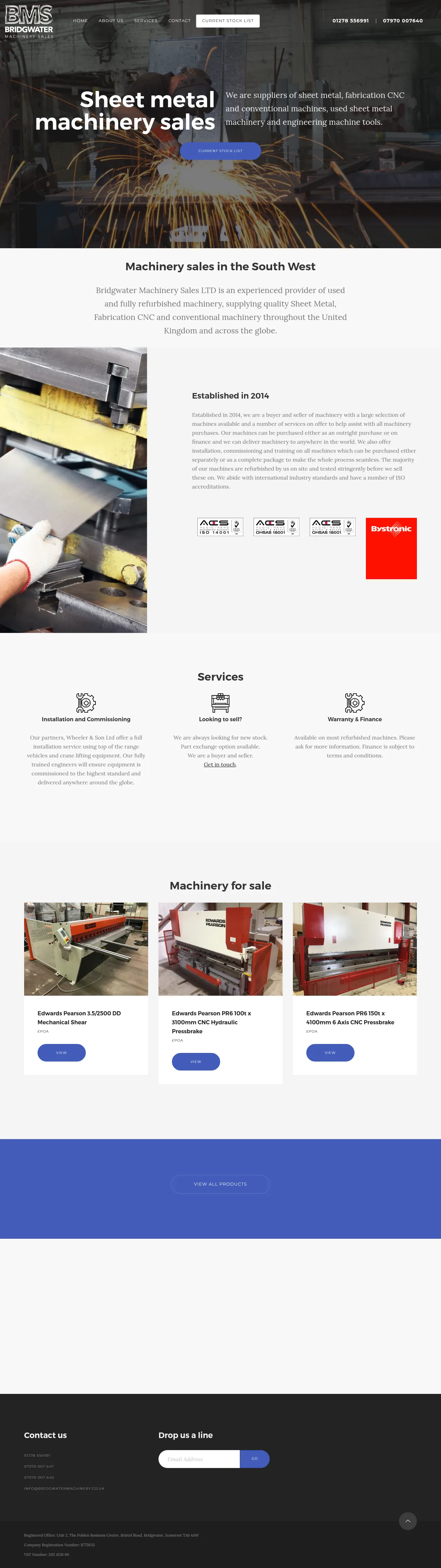Bridgwater Machinery Sales LTD specializes in the trade of used and fully refurbished sheet metal, fabrication, CNC, and conventional engineering machinery. Established in 2014, the company serves a global client base by providing high-quality equipment backed by rigorous on-site testing and adherence to international industry standards. Their comprehensive service offerings include professional installation, commissioning, and operator training, available as standalone services or integrated project packages. In addition to direct sales, the company facilitates machinery procurement through finance options and part-exchange programs. Their commitment to quality ensures that all refurbished units meet stringent performance criteria before deployment.