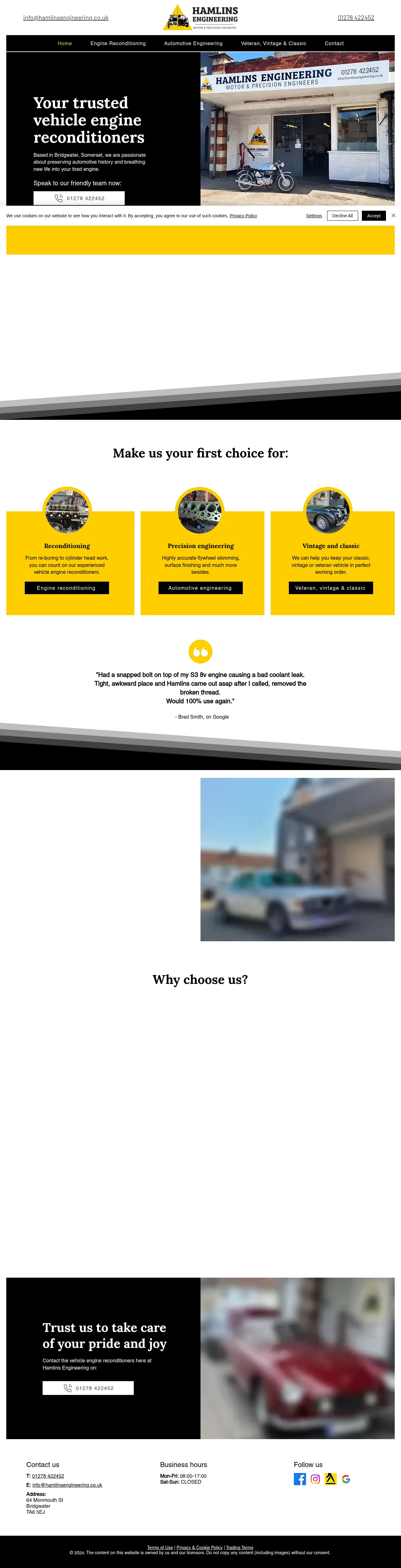 64 Monmouth St, Bridgwater TA6 5EJ, UK, Bridgwater, England, United Kingdom of Great Britain and Northern Ireland01278 422452info@hamlinsengineering.co.ukhttp://hamlinsengineering.co.uk/