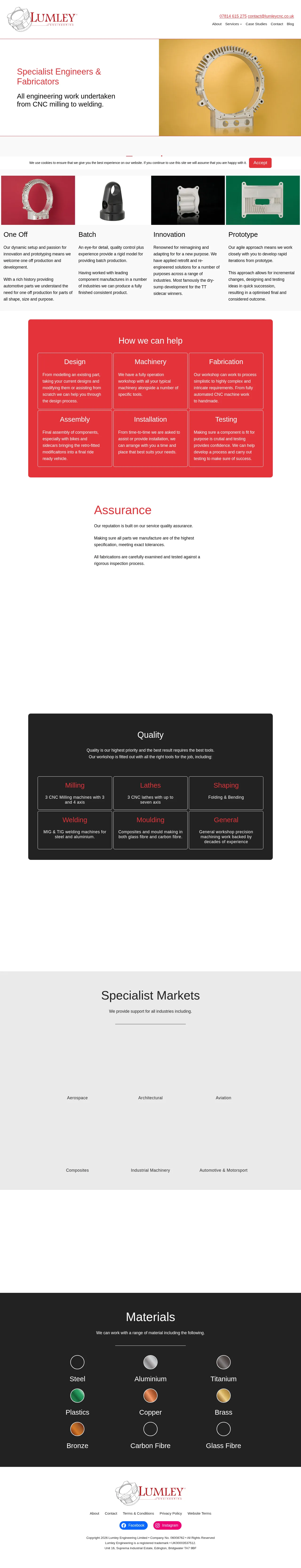 Lumley Engineering provides comprehensive precision machining, fabrication, and design services, specializing in both rapid prototyping and batch production. The company serves a diverse range of industries, including aerospace, aviation, automotive, and industrial machinery, with specific expertise in composite mould making and performance vehicle retrofitting. Their workshop capabilities span CNC milling and turning, welding, and final component assembly, supported by rigorous quality assurance and testing processes. Known for an agile approach, the firm works closely with clients from initial concept and design modification through to installation. The team is dedicated to delivering high-specification components, offering custom engineering solutions for both highly complex and standard manufacturing requirements.