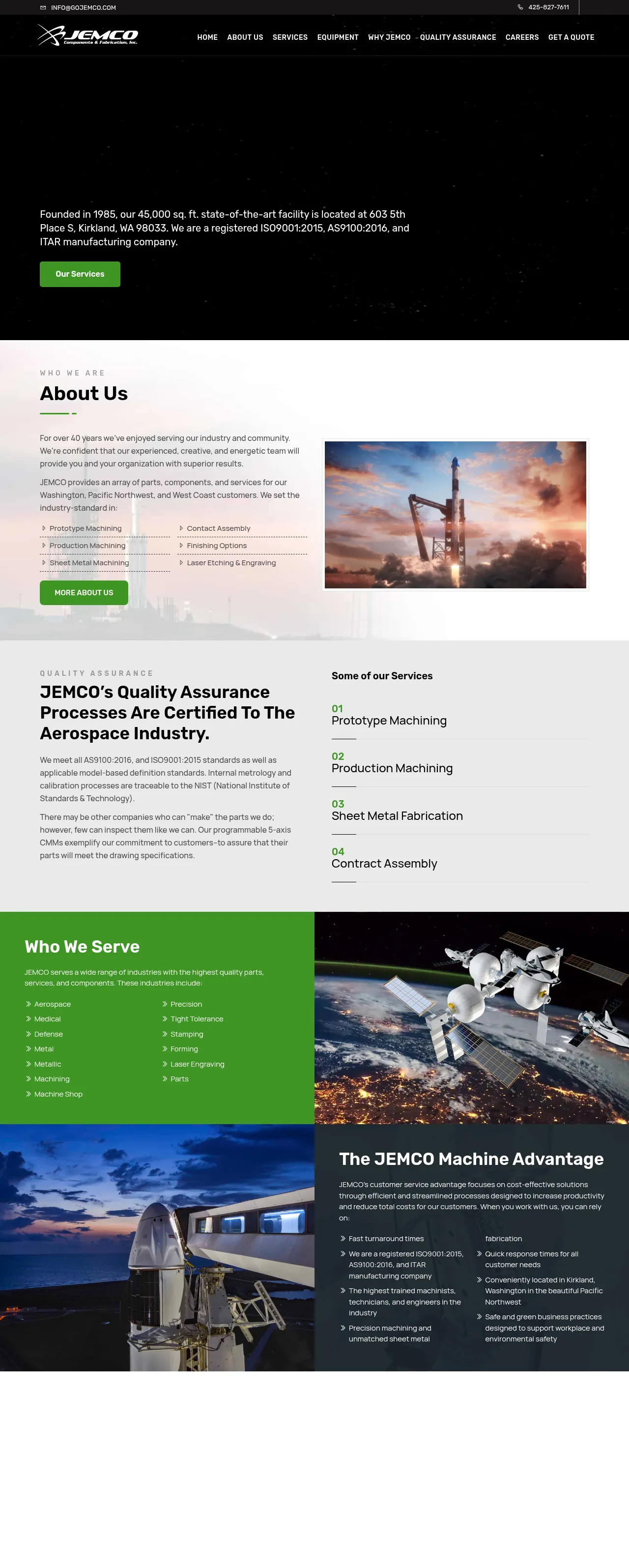 JEMCO is a precision manufacturing facility specializing in high-precision CNC machining, sheet metal fabrication, and contract assembly services. Serving the aerospace, medical, and defense industries, the company provides comprehensive solutions from rapid prototyping to high-volume production. Their facility is equipped with advanced 5-axis machining and laser technology, supported by rigorous quality assurance and inspection capabilities. JEMCO differentiates itself through tight-tolerance expertise, complex component assembly, and a commitment to stringent customer specifications. They maintain an integrated workflow that includes internal finishing processes, laser marking, and comprehensive CMM inspection services.