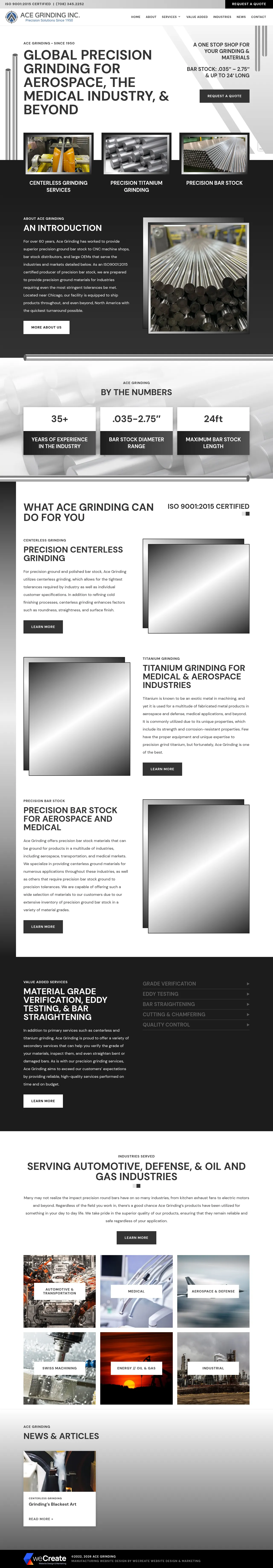 Ace Grinding is an industrial manufacturing firm specializing in centerless grinding and the production of precision-ground bar stock. The company serves a diverse range of sectors, including aerospace, defense, medical, automotive, and industrial manufacturing. Key capabilities include precision titanium grinding, bar straightening, and nondestructive material testing services. By adhering to strict tolerance requirements and utilizing advanced cold finishing processes, the firm ensures consistent product reliability. Ace Grinding maintains a focus on high-quality surface finishes and dimensional accuracy for critical components used in demanding applications.