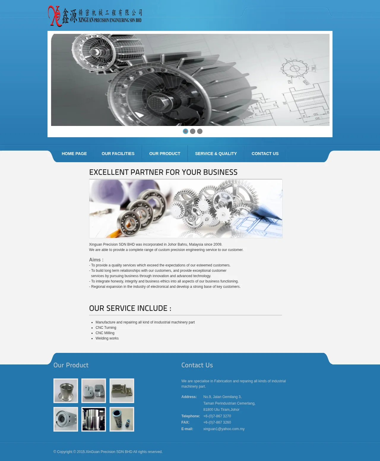 Xinguan Precision SDN BHD, incorporated in Johor Bahru, Malaysia in 2009, provides custom precision engineering services. The company specializes in fabrication and repair of industrial machinery parts. It offers machining and welding capabilities to support manufacture and maintenance of industrial components.