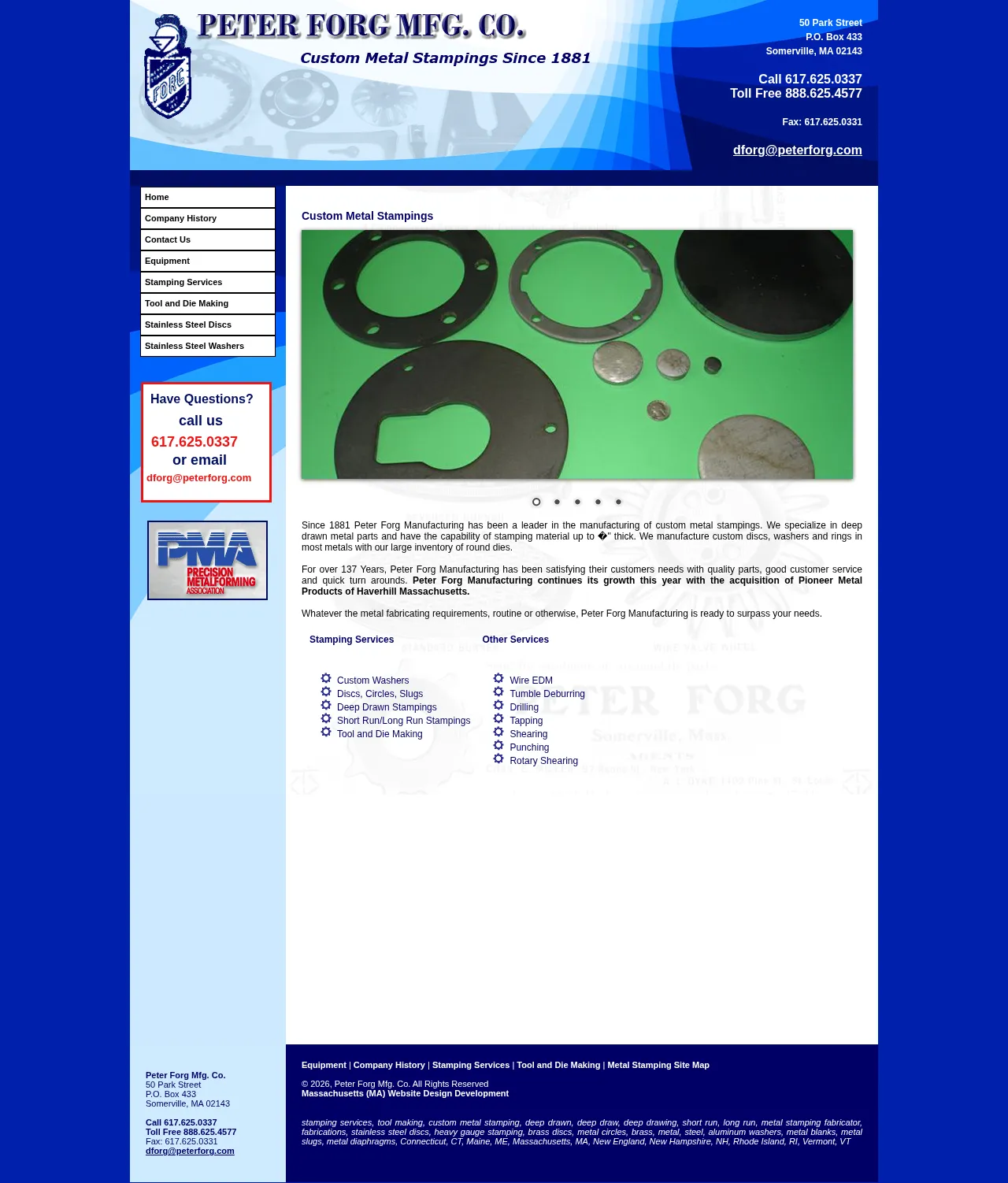 Peter Forg Manufacturing is a metal fabrication specialist with a legacy dating back to 1881. The company focuses on deep drawn metal parts and custom stamping for a wide variety of industrial applications. They offer high-precision production for components such as rings, washers, and discs, with the capacity to process material up to 0.5 inches in thickness. Beyond core stamping, the facility provides extensive secondary operations including tool and die manufacturing, drilling, and tapping. Their operations support both short-run and long-run production cycles tailored to client-specific requirements.