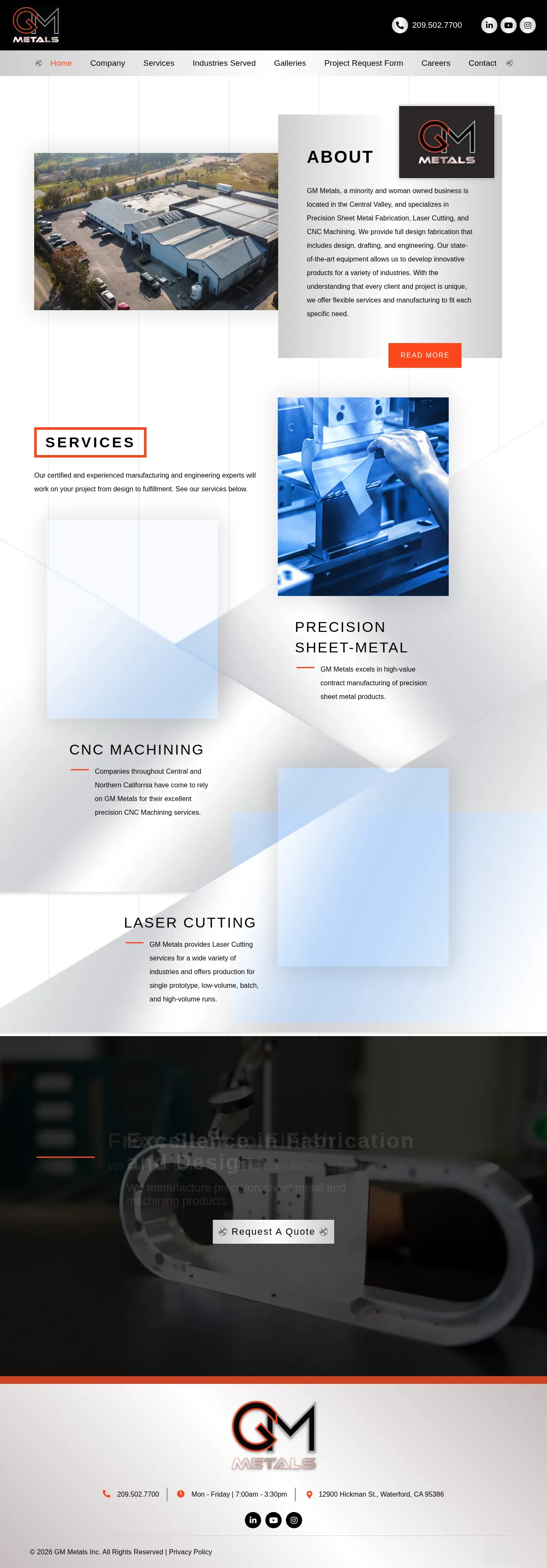 GM Metals is a minority and woman-owned manufacturing company based in Waterford, California, providing end-to-end design and fabrication solutions. The company specializes in precision sheet metal fabrication, laser cutting, and CNC machining for a diverse range of industrial sectors. Its services encompass the entire production lifecycle, including initial design, engineering, drafting, and final manufacturing. GM Metals accommodates varying project scales, ranging from single prototypes and low-volume batches to high-volume production runs. With a focus on quality and precision, the facility serves clients throughout Central and Northern California.