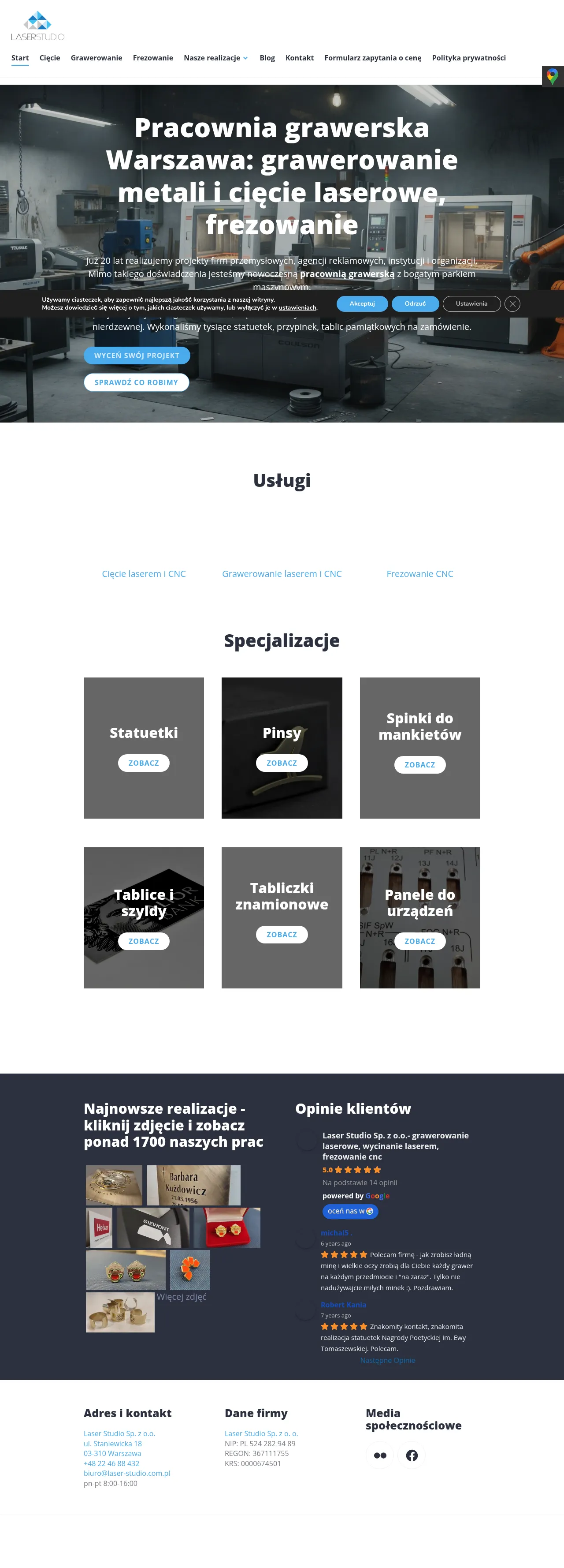Laser Studio is a professional engraving and machining facility based in Warsaw with over 20 years of industry experience. The company provides specialized services including laser cutting, laser engraving, and CNC milling for a wide range of industrial and commercial applications. They serve diverse clients, including industrial manufacturers, advertising agencies, and organizations, by producing custom components such as statuettes, plaques, identification plates, and machine panels. Known for high precision and technical flexibility, the facility supports projects requiring intricate detailing and material processing. The company maintains a modern, extensive machine park to handle complex production requirements while meeting client deadlines.