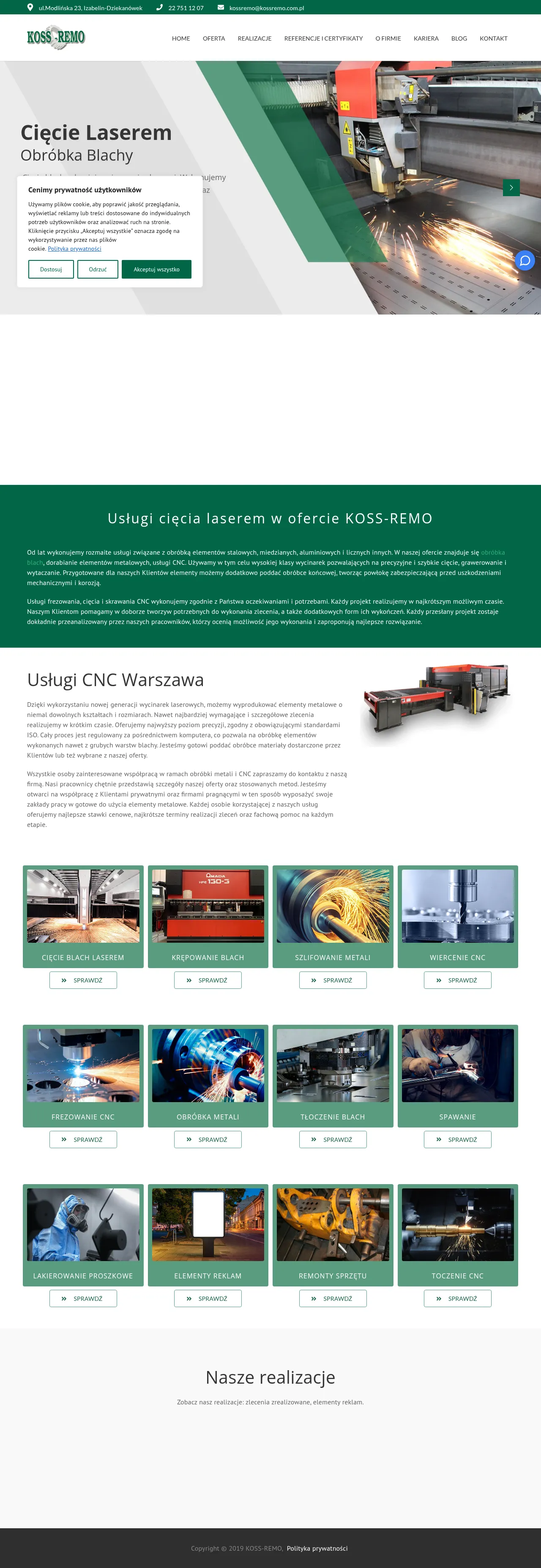 KOSS-REMO is a Polish manufacturing company established in 1986 that specializes in comprehensive metal processing services. The firm operates a modern production facility equipped to provide CNC machining, laser cutting, metal forming, and specialized welding services. They serve a diverse client base ranging from private individuals to industrial partners in sectors such as advertising, construction, and transportation equipment repair. The company emphasizes precision, offering custom material selection, surface finishing, and corrosion protection for finished metal components. With a focus on high-quality standards, KOSS-REMO manages the entire production process from technical analysis to final component delivery.