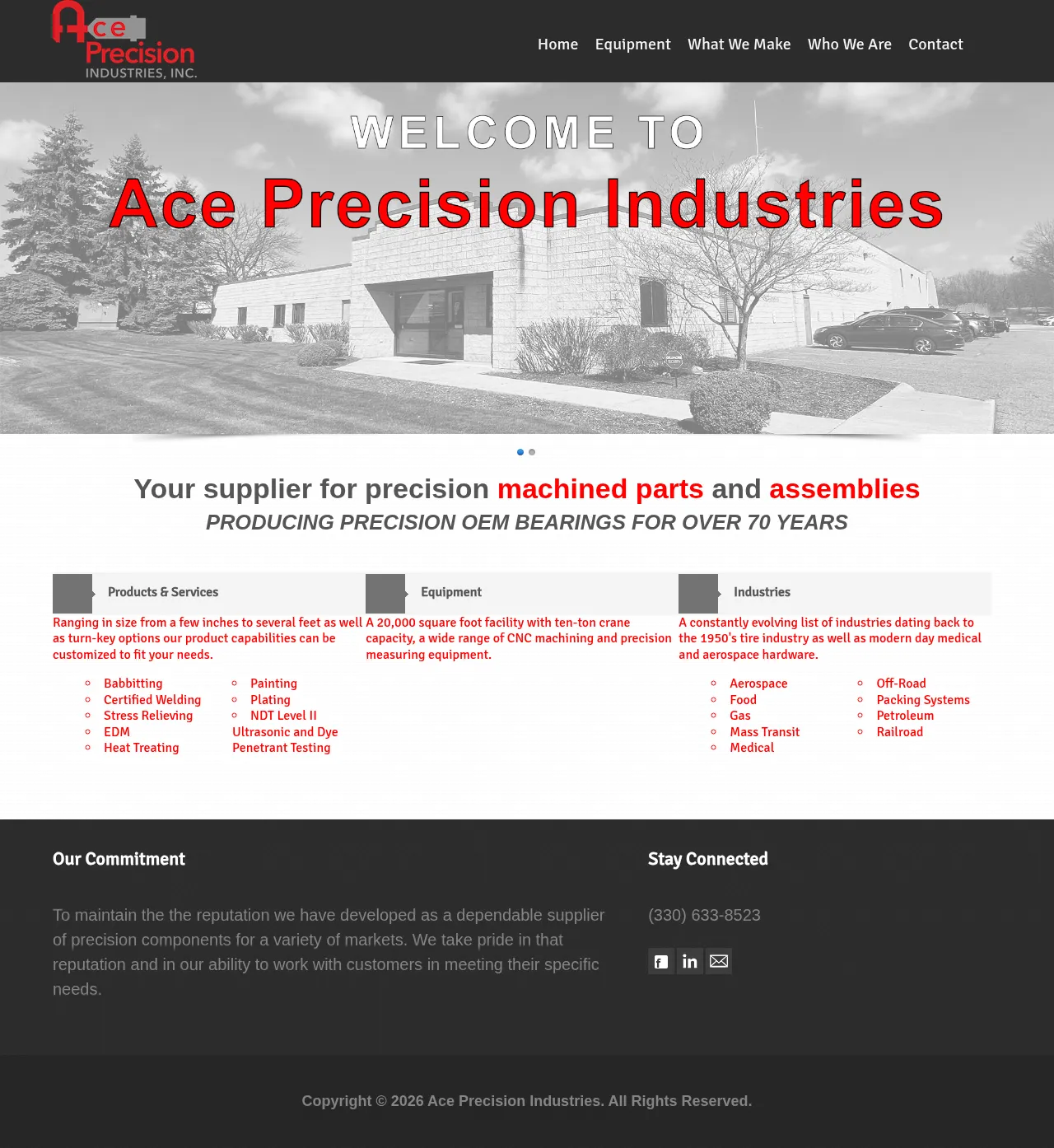 Ace Precision Industries, Inc. is a specialized manufacturer of precision OEM bearings and machined components with over 70 years of industry experience. Operating out of a 20,000 square-foot facility, the company provides comprehensive production services ranging from prototype-sized parts to large-scale assemblies. They serve a diverse client base across sectors including aerospace, medical, mass transit, petroleum, and food processing. Their technical capabilities include babbitting, certified welding, stress relieving, and advanced non-destructive testing. The company is committed to delivering high-quality, customized turn-key solutions tailored to meet specific customer requirements.