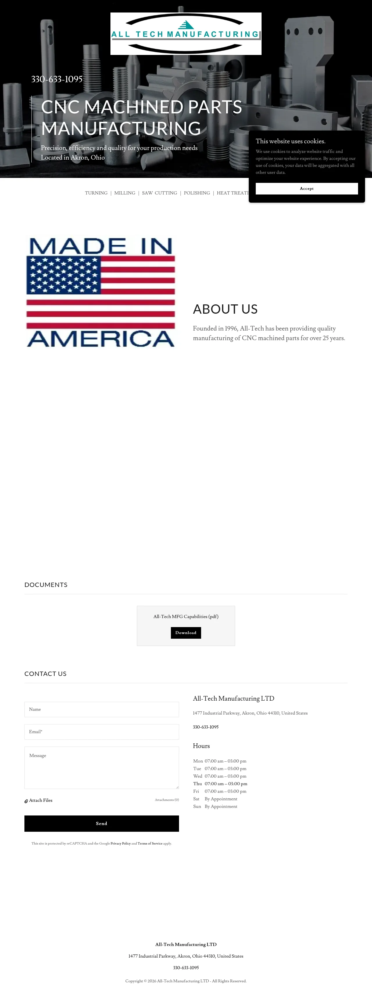 All-Tech Manufacturing LTD is an industrial facility specializing in the production of precision CNC machined components. Established in 1996, the company has over 25 years of experience serving diverse manufacturing sectors. The firm focuses on delivering high-quality machined parts through efficient production processes and rigorous quality standards. They operate out of their Akron, Ohio facility, providing comprehensive contract machining services. All-Tech emphasizes consistency and technical accuracy in meeting client production requirements.