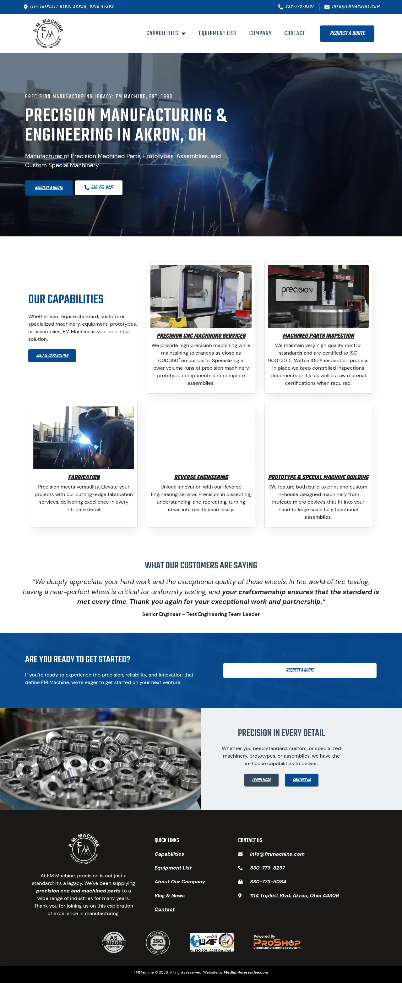 FM Machine Co. is a precision manufacturer established in 1963, specializing in CNC machining, prototype development, and custom machinery construction. The company serves a diverse range of industries, including aerospace, medical, automotive, and defense, providing services that span from engineering to complex assembly. Their facility utilizes advanced multi-axis CNC technology and rigorous quality control protocols to maintain tight tolerances and high-precision standards. With a focus on both low-volume custom work and production-ready manufacturing, FM Machine offers end-to-end solutions that include inspection, testing, and logistical support. The organization is committed to collaborative partnerships, ensuring that design, material selection, and final component performance meet precise industrial specifications.