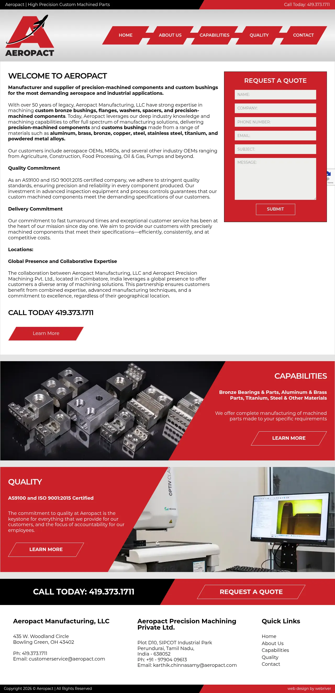 Aeropact is a global manufacturer specializing in high-precision machined components, bronze bushings, and industrial hardware. Serving sectors such as aerospace, power generation, and general industry, the company provides custom solutions including turning, milling, drilling, and tapping services. They leverage a global manufacturing network with facilities in the United States and India to deliver reliable, high-tolerance parts. The company utilizes advanced process controls and inspection protocols to ensure quality and strict adherence to technical specifications. With a focus on responsiveness, Aeropact provides both custom manufacturing and standardized components like National Aerospace Standards bushings.