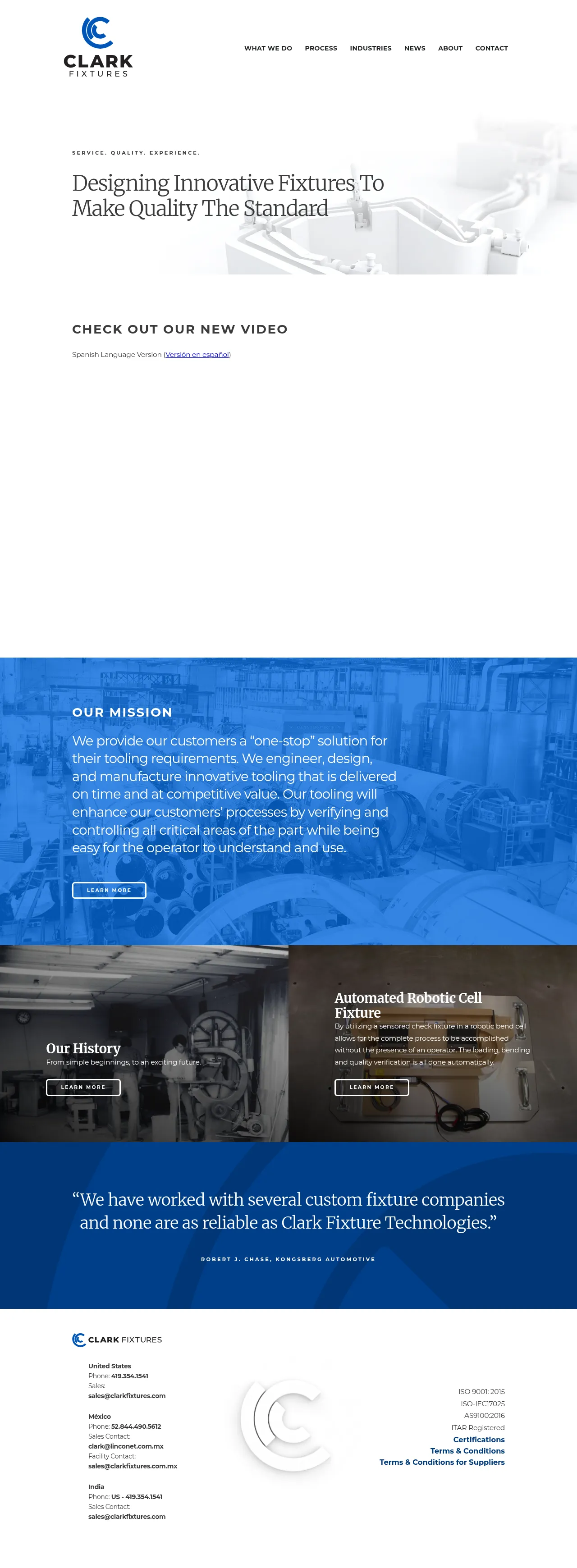 Clark Fixture Technologies specializes in the design and manufacturing of custom check fixtures for quality verification. Serving the aerospace, space exploration, and automotive sectors, the company provides technical solutions for robotic weld cells and part conformity inspection. With global facilities in the United States, Mexico, and India, they support clients throughout the product development lifecycle. The company is recognized for its long-standing expertise in quality control integration, including manual and automated fixture systems. They prioritize engineering precision to ensure manufacturing outputs meet rigorous design tolerances.