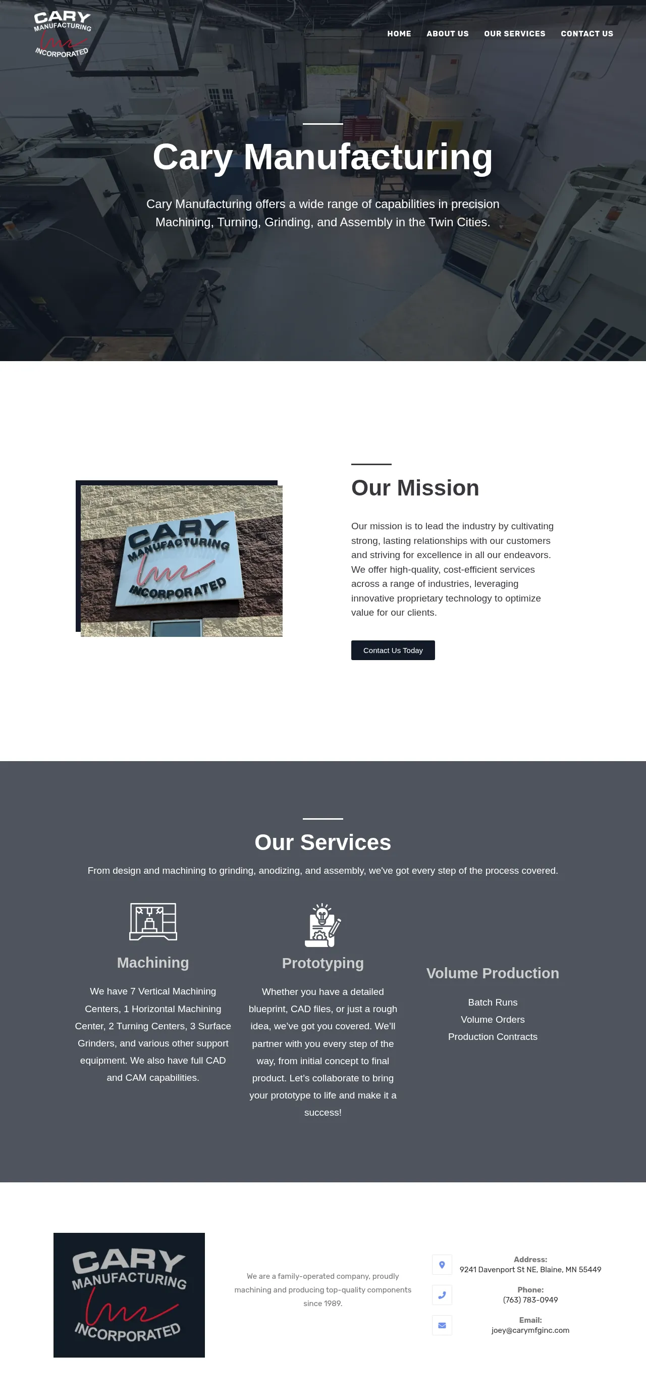 Cary Manufacturing is a family-operated precision machine shop based in Blaine, Minnesota, providing manufacturing solutions since 1989. The company specializes in machining, turning, grinding, and assembly for a variety of industrial applications. They offer end-to-end support ranging from initial conceptual design and prototyping to full-scale volume production runs. With integrated CAD/CAM capabilities, the facility maintains strict quality control standards for every project. The team is recognized for consistent, on-time delivery and a commitment to collaborative customer partnerships.