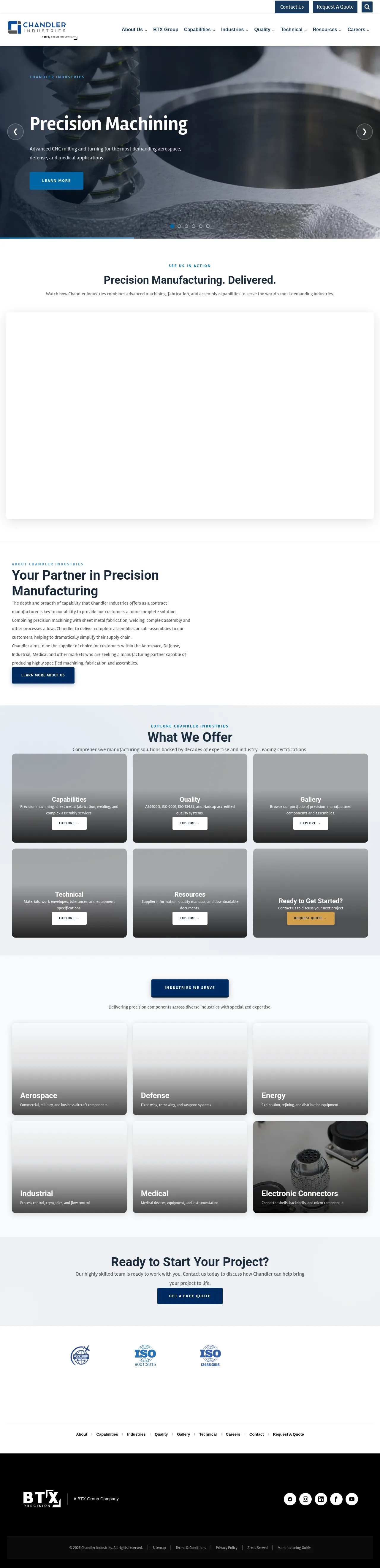 Chandler Industries is a contract manufacturer providing precision machining, sheet metal fabrication, welding, and complex assembly services. The company specializes in producing high-specification components for the aerospace, defense, medical, and industrial sectors. Their manufacturing capabilities range from prototypes to full production runs, supported by advanced CNC milling, turning, and laser cutting technologies. With multiple facilities across North America, the company offers a vertically integrated solution designed to simplify customer supply chains. Chandler Industries maintains rigorous quality standards, including NADCAP-accredited welding and various aerospace and medical certifications.