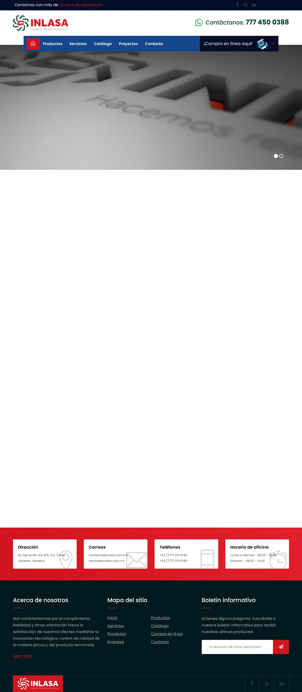 Eje Nte. Sur, Civac, 62578 Jiutepec, Mor., Mexico, Jiutepec, Estado de Morelos, Mexico800 890 1150ventas@inlasa.com.mxhttps://www.inlasa.com.mx/