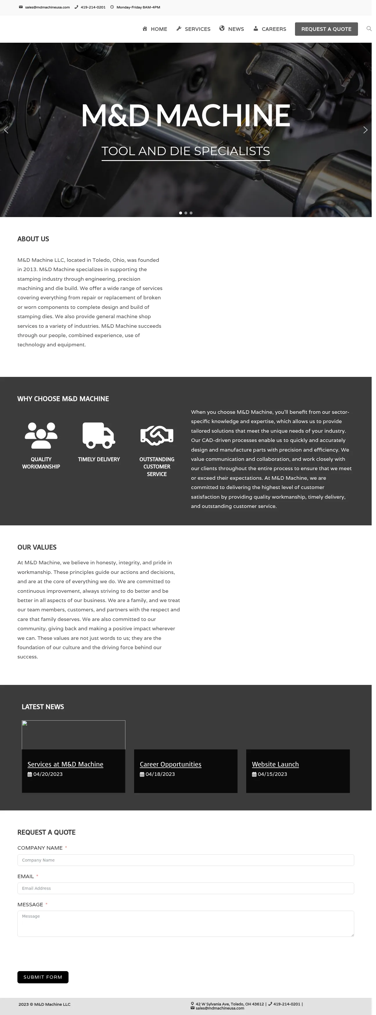 MD Machine is an industrial manufacturing company based in Toledo, Ohio, specializing in tool and die services. The facility provides comprehensive precision machining, engineering, and consulting solutions tailored for stamping tools. They emphasize quality workmanship, timely project delivery, and responsive customer service for their clients. Their onsite support capabilities ensure operational efficiency for manufacturing processes. The business utilizes advanced CNC machinery to maintain high standards of accuracy and performance.