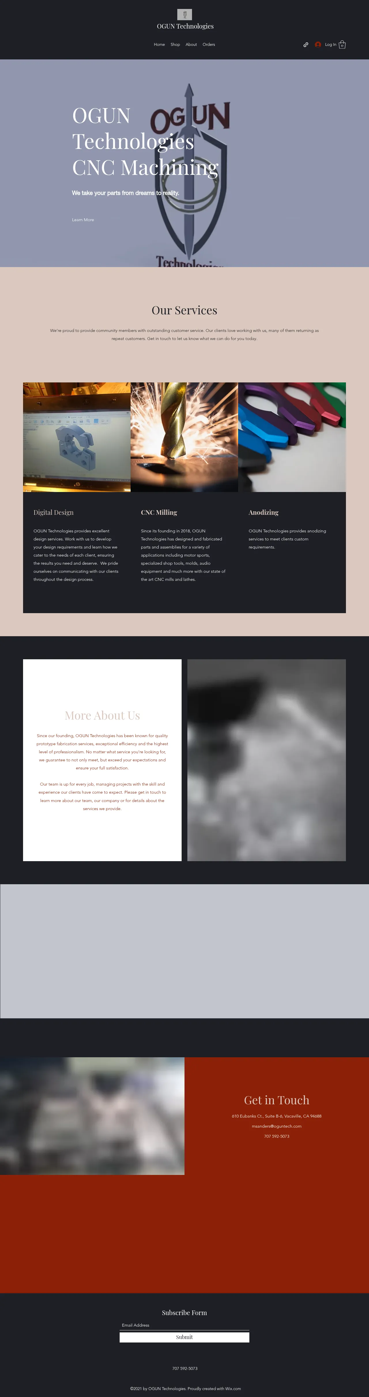 OGUN Technologies is a CNC machining and fabrication company based in Vacaville, California. The company provides digital design/CAD, CNC milling and anodizing services for parts and assemblies across industries including motorsports, specialty tools, molds and audio equipment. Founded in 2018, OGUN operates CNC mills and lathes and supports customers through the design and production process. They emphasize ongoing communication with clients during project development.