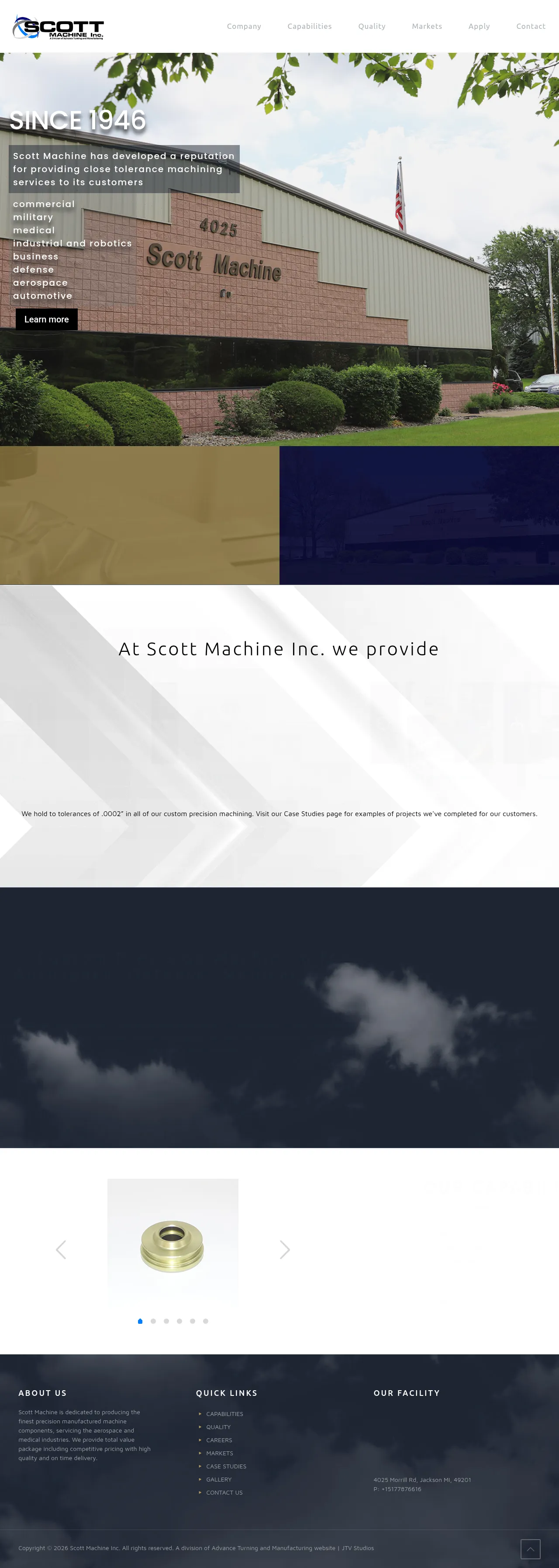 Established in 1946, Scott Machine Inc. is a precision machining facility providing high-tolerance components for the aerospace, medical, defense, and industrial sectors. The company specializes in fluid connector machining and custom precision manufacturing capable of maintaining tolerances as fine as .0002". Utilizing cellular manufacturing and rapid prototyping, they support clients from initial development through to final production. Their commitment to operational excellence ensures competitive pricing, consistent quality, and reliable on-time delivery for complex project requirements. The organization maintains a broad range of capabilities including CNC turning, milling, and advanced metal finishing services.