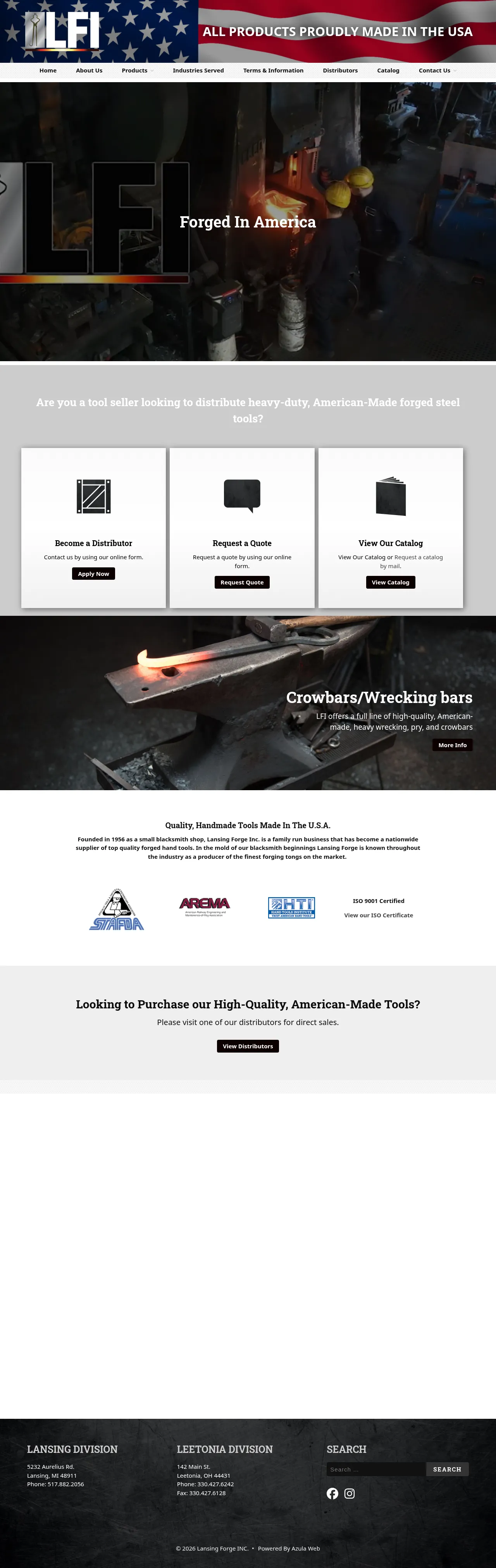 Lansing Forge specializes in the manufacturing of heavy-duty, forged steel tools for a wide range of industrial applications. The company produces American-made equipment including wrecking bars, railroad tools, marine hardware, and plumbing implements. In addition to their standard catalog, they provide full-service machine shop capabilities and support custom builds and prototypes based on client specifications. They serve diverse industrial sectors with a focus on high-quality forging and fabrication. As an ISO 9001 certified facility, they maintain rigorous quality standards for all manufactured components and custom hammer keys.