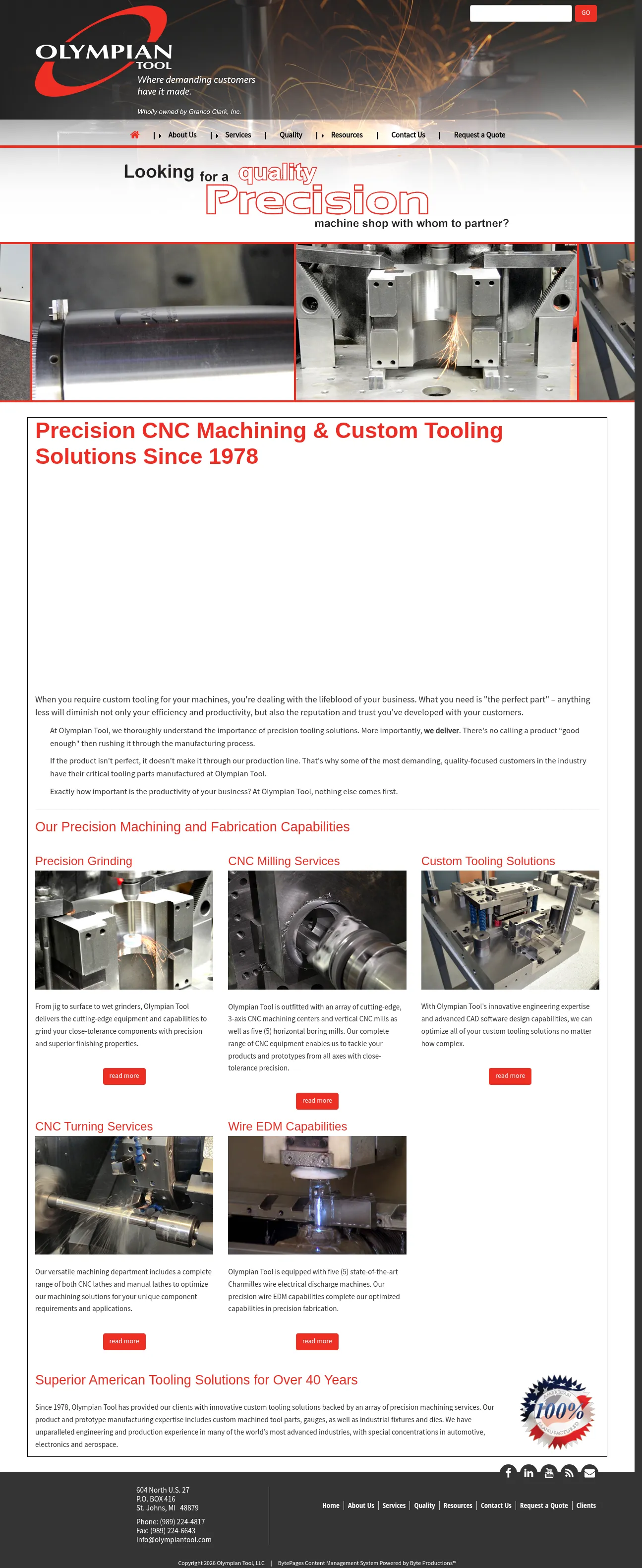 Olympian Tool, LLC is a precision manufacturing facility based in St. Johns, Michigan, providing custom tooling, machining, and fabrication services since 1978. The company specializes in close-tolerance CNC machining, wire EDM, and metal grinding for complex industrial applications. They serve a diverse range of sectors, including the automotive, aerospace, and electronics industries. By utilizing climate-controlled inspection processes and advanced CNC technology, the firm maintains strict quality standards for prototypes and production runs. Olympian Tool is recognized as a single-source provider for precision metalworking, offering rapid-response capabilities to address critical manufacturing requirements.
